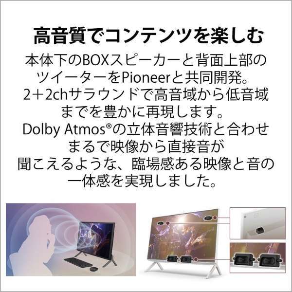 ・ サウンド ⇔ 2+2chステレオスピーカー(スピーカー、ツイーター)内蔵、デジタル(ステレオ)マイク内蔵