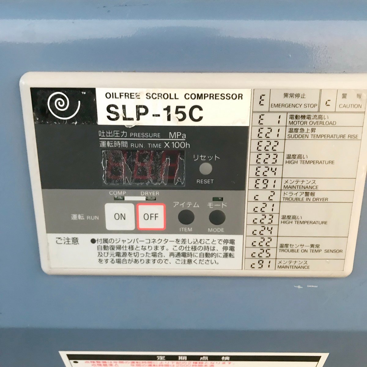 | 商品 | アネスト岩田 オイルフリースクロールコンプレッサー 『SLP-15C』 エアーコンプレッサー 最高使用圧力0.80MPa 三相200V ★動作確認済みです |