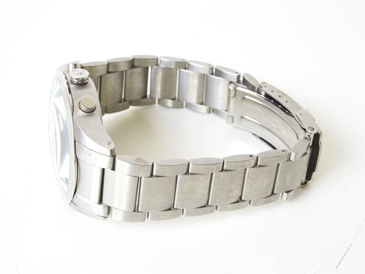 | *直径(約):41mm(竜頭含まず) *腕回り(約):20㎝ *付属品:なし *駆動方式: クォーツ *現在稼働中です。 ≪商品状態≫ *少しスレや汚れ等使用感がありますがおおむねキレイな状態と思います。 *風防に気になるキズはありません。 *現状渡しとなります。 *商品・状態につきましては、画像にてご判断頂けます方ご入札お待ちしております。 注意事項 *写真画面をご確認の上、御入札をお願いします。不明点がございましたら入札前にご質問ください。 *一度人手に渡った品です神経質な方・完品をお探しの方の入札はご遠慮ください *商品の画像につきましては、パソコン ディスプレイの環境や設定によっては商品のカラー等が実物と異なって表示されることもございます *大きさの目安にメジャーやスケールが画像に写ることがありますが、商品には含まれません。 *当方専門的な知識はありません。ご質問は分かる範囲でお答えします *終了間際や落札後の質問は返答できませんのでご了承ください。 *イタズラ入札が多い為、新規の方は質問欄にてご連絡ください。ご連絡がない場合は削除致しますので予めご了承願います。 落札終了後、落札後24H以内の連絡、かんたん決済期限内にご入金の確認が出来ない場合は落札者様都合のキャンセル手続きをさせて頂きます。 | |||