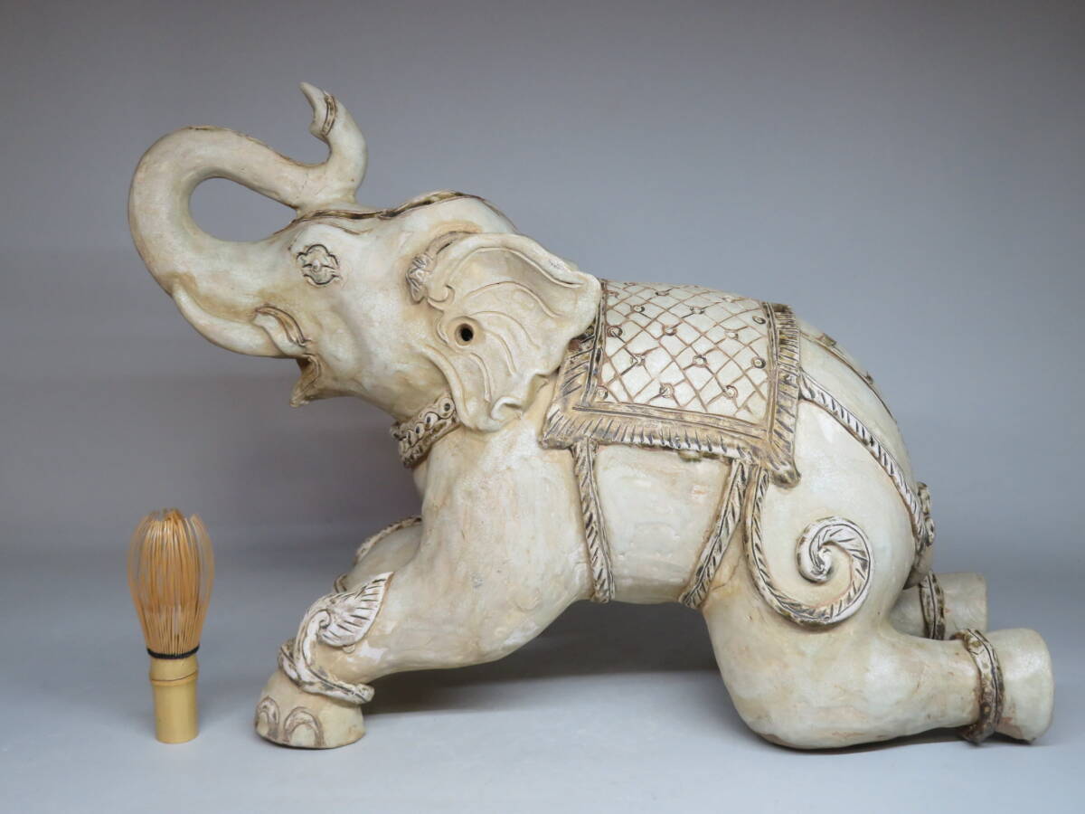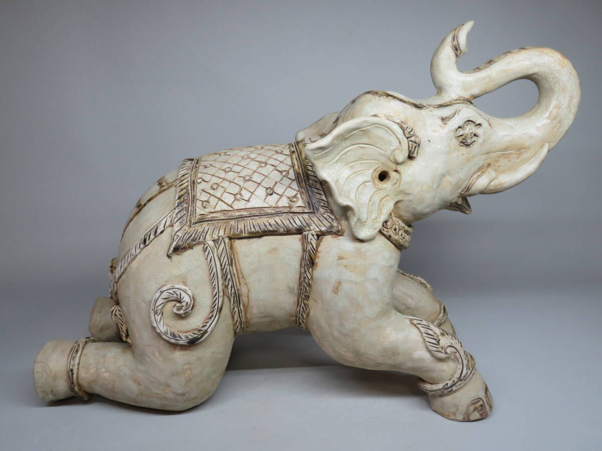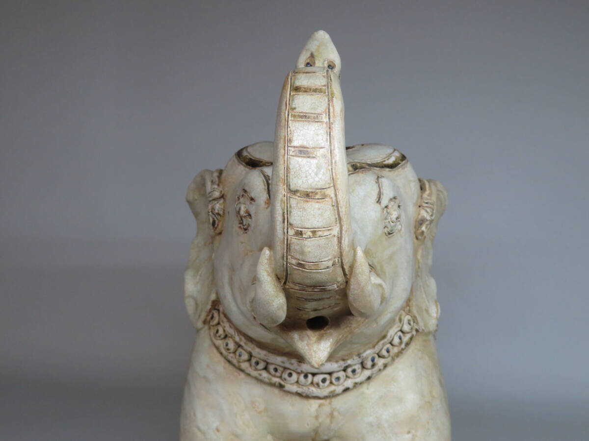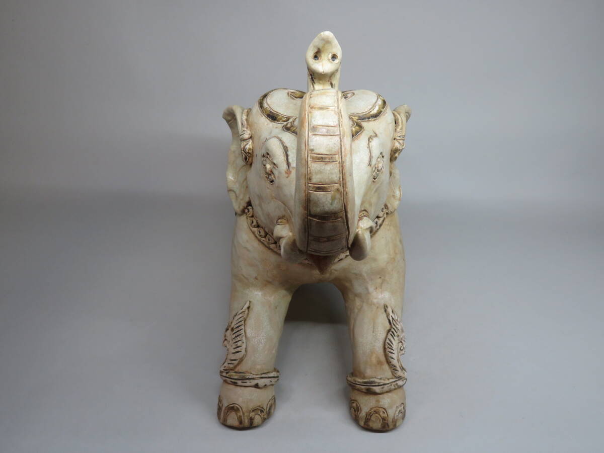 | 「都内コレクター所蔵品」タイ古陶磁 スコータイ時代 陶器製 鉄絵白褐釉象 置物 スワンカローク◆発掘品 | |||
