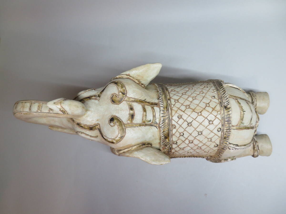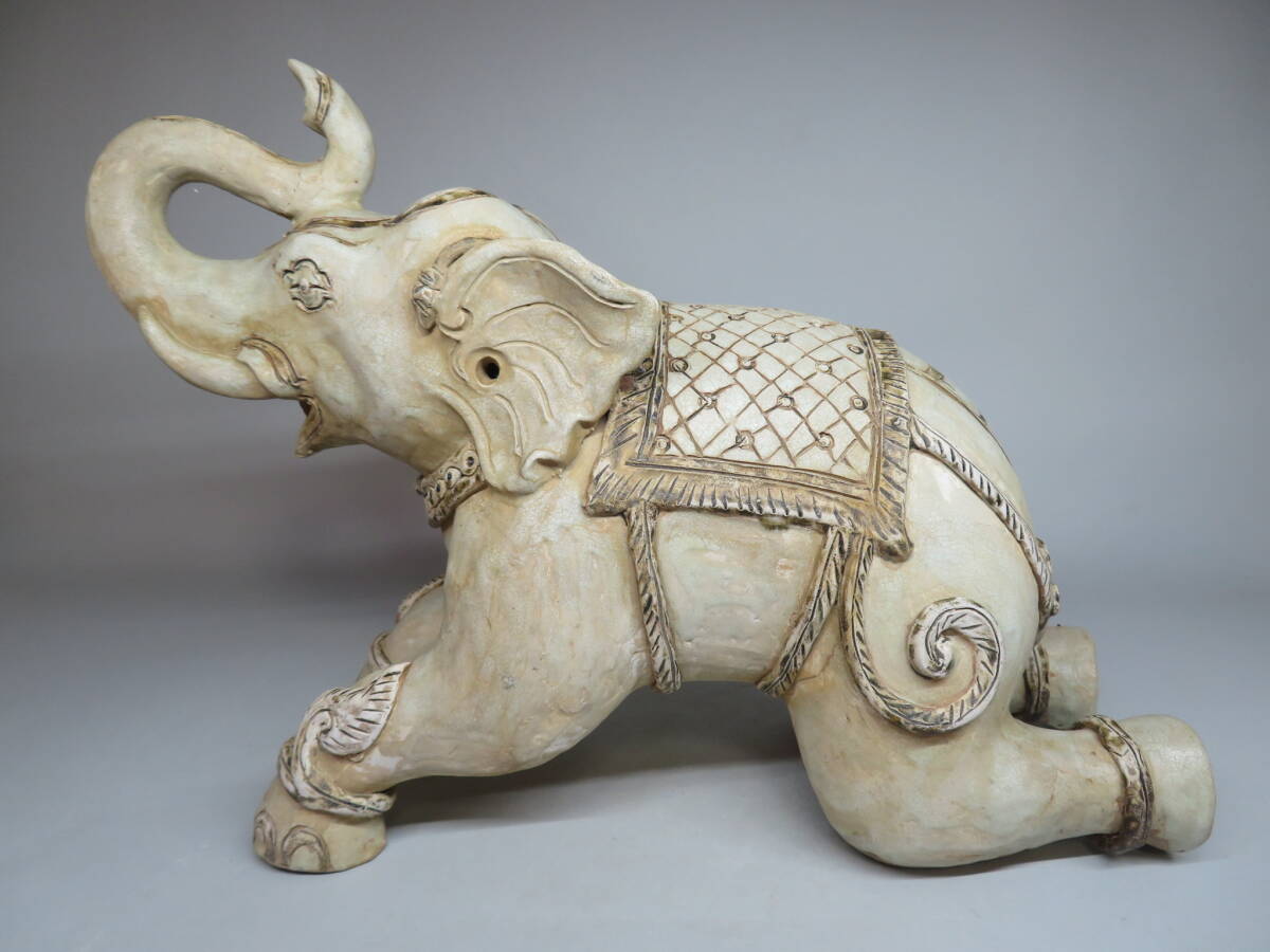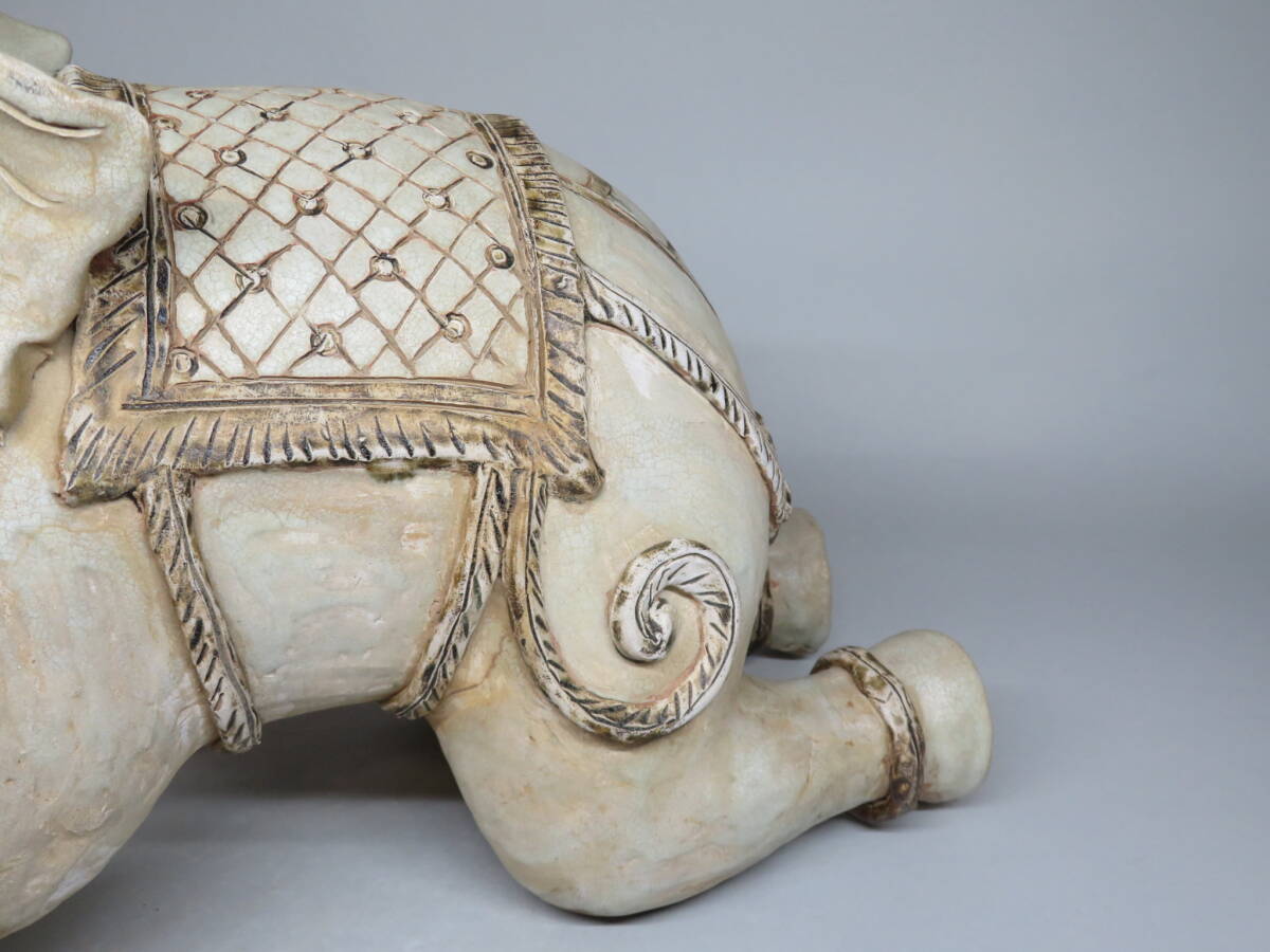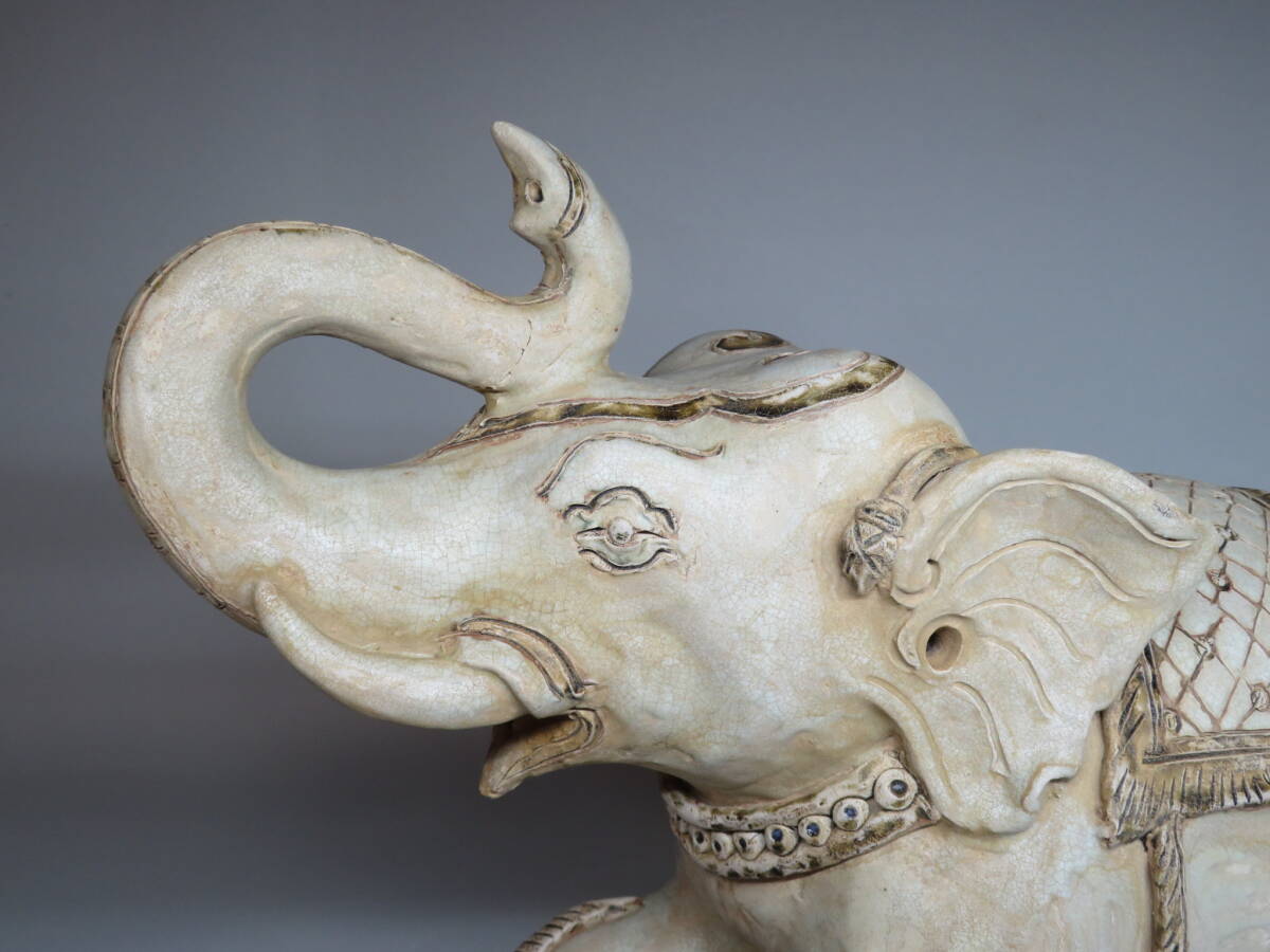 | 「都内コレクター所蔵品」タイ古陶磁 スコータイ時代 陶器製 鉄絵白褐釉象 置物 スワンカローク◆発掘品 | |||