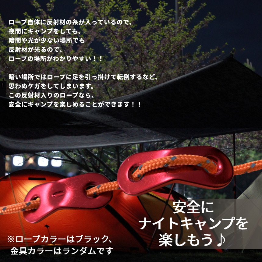 | 送料無料!!! 送料及び下記のご案内をご確認の上、ご入札お願い致します。 離島地域を除く九州、四国、本州まで送料無料。 ※北海道は+1000円、離島地域及び沖縄県は+3000円にて承ります。(発送前に加算) ※画像内にカラー及びサイズ等の選択が可能と記載がある場合がございますが、 お届けする物はタイトルまたは商品説明文に記載の物です。 ★※注文後のカラー変更や異なるカラー・サイズ指定等は一切承っておりません。 ※★※仕様(ロゴデザイン/ロゴ有無等も含む)は予告なく変更する場合があります。 ※多少の汚れや小傷がある場合がございますがご了承ください。 梱包は簡易包装ですので、箱の角落ち等はご了承願います。 【商品説明】 アウトドア、キャンプが好きな人必見!! テント、タープをたてる際に必要なガイドロープから待望の新色登場! 新色ブラックは 「テントやタープの雰囲気を壊さず、夜には反射材で視える」を実現! テントロープにはアウトドア時の 急な天候の変化や強風からテントを守ったり、 テント内の快適さを保つなど大切な役割があります!! 太さは切断しやすく結びやすい安心感がある4mm! テント、タープなどの設営、 海などの風が強い場所での使用に大活躍!! また、テントの設営以外にも、 洗濯物を干したり、目印として使えたり、 用途も様々!! ロープ自体に反射材の糸が入っているので、 夜間にキャンプをしても、 暗闇や光が少ない場所でも 反射材が光るので、 ロープの場所がわかりやすい!! 暗い場所ではロープに足を引っ掛けて転倒するなど、 思わぬケガをしてしまいます。 この反射材入りのロープなら、 安全にキャンプを楽しめることができます!! ======================================== 【商品仕様】 カラー:Blackブラック 長さ:約4m 太さ:約4mm 素材:ナイロン(ポリプロピレン+反射材入り糸 ) 内容:ロープ×4本、アルミニウム製自在金具×4個 ※ペグは付属しておりません ======================================== ※詳細は画像にてご確認ください ![]() ![]() ![]() ![]() ![]() ![]() |