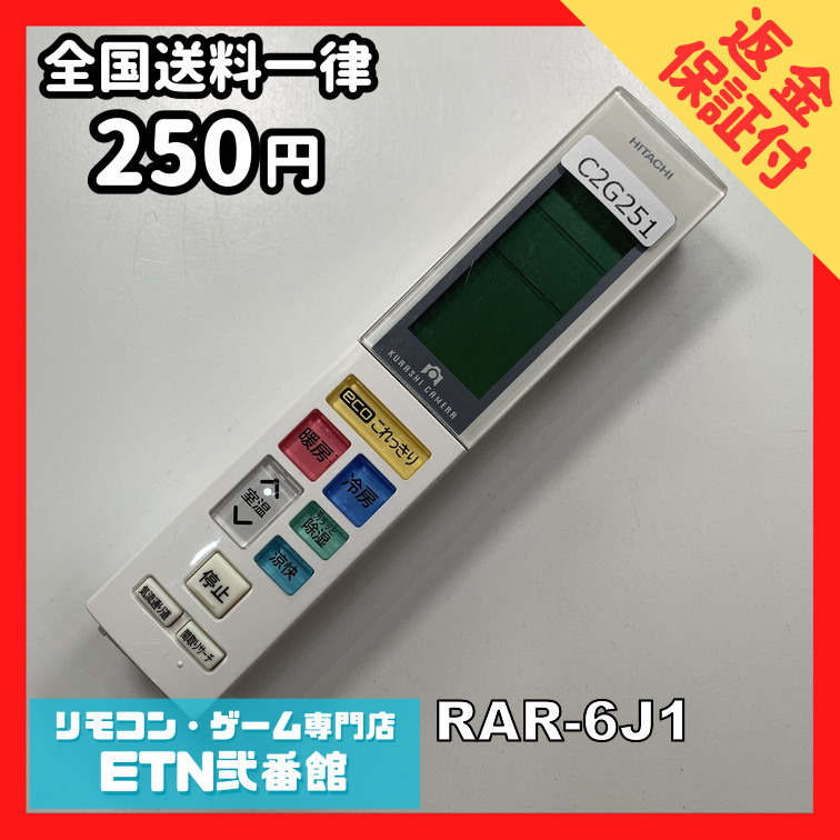 C2G251 【送料250円】エアコン リモコン / 日立 ヒタチ HITACHI RAR-6J1 冷房 暖房 動作確認済み★即発送★
