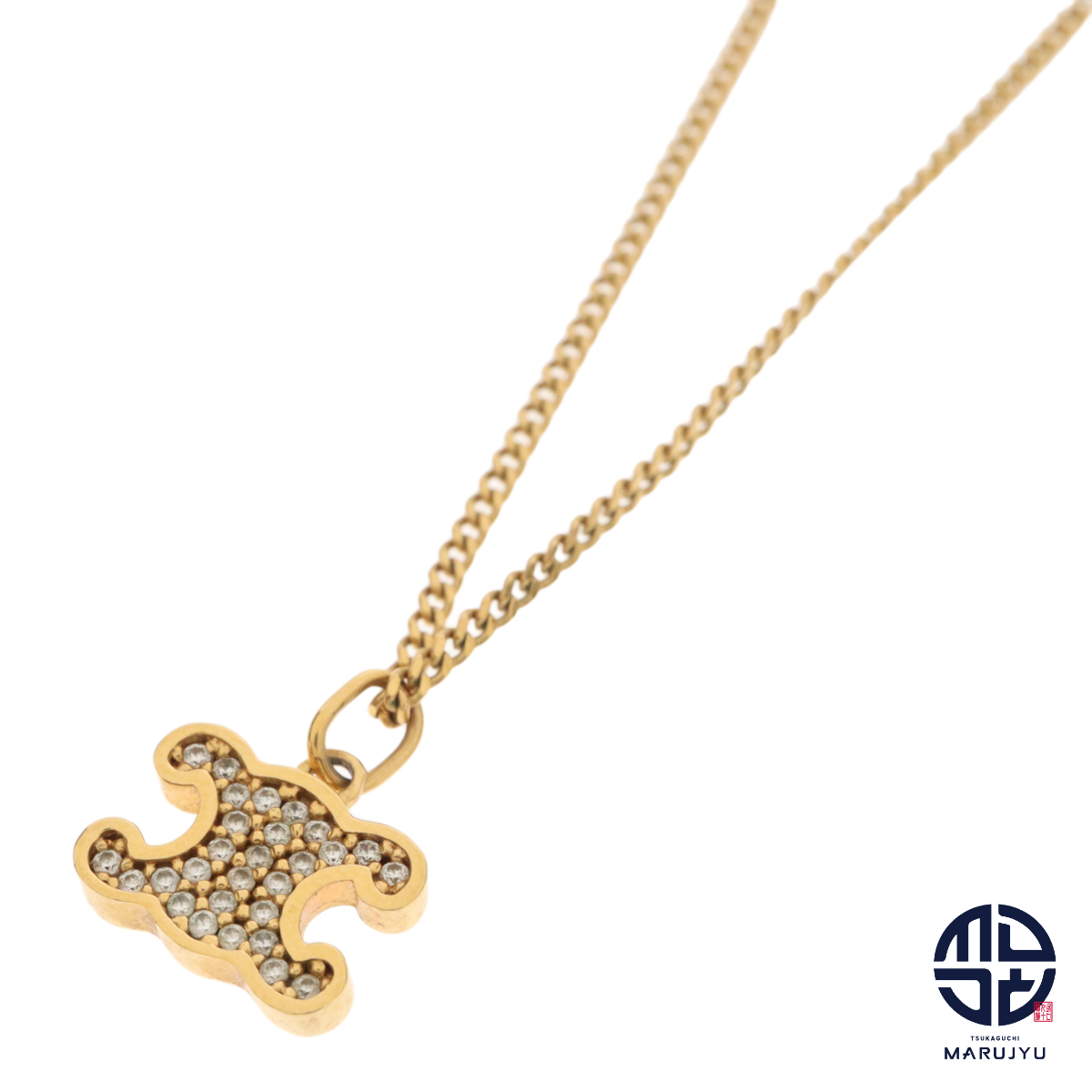 | セリーヌより、ラインストーンネックレスになります。ブランドモチーフのトリオンフが印象的なお品です。ABランク。小傷がございますが、まだまだお使いいただけるお品です。 | |