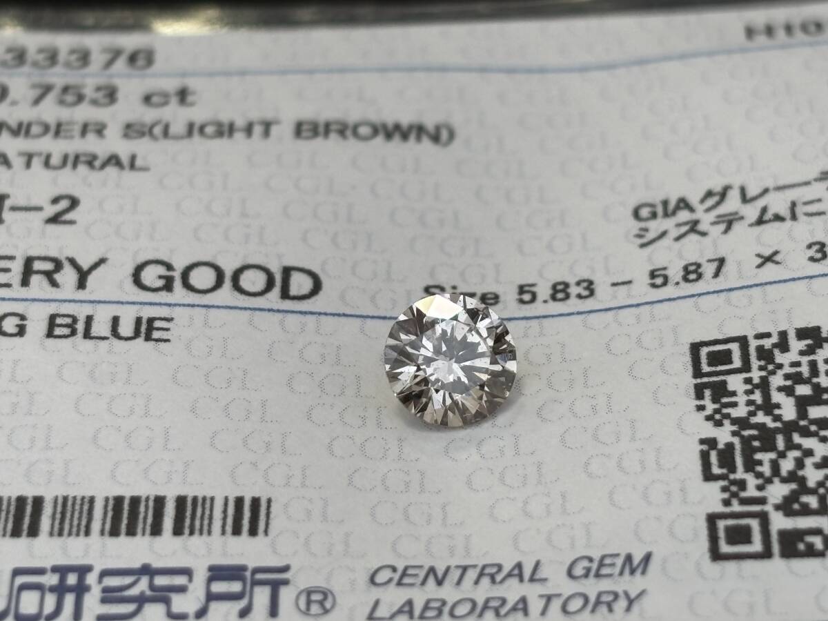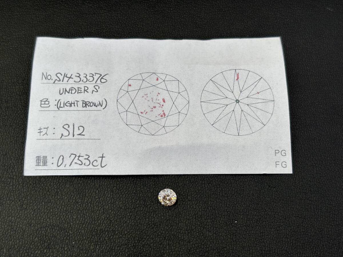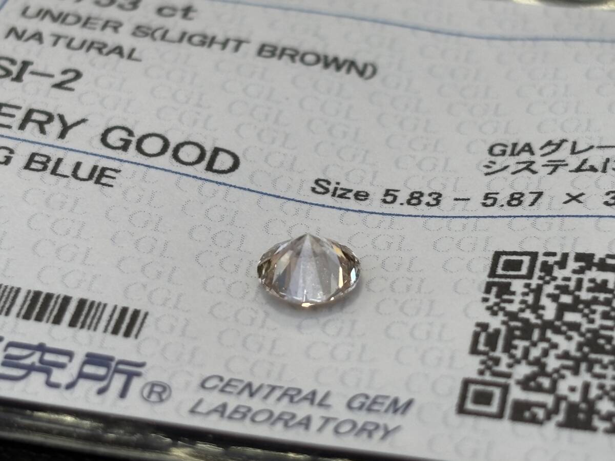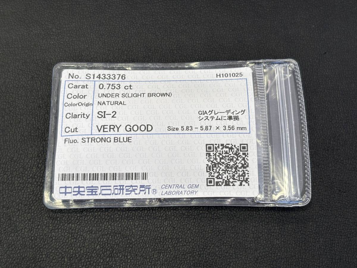 【11018】D0.753ct / UNDER S(LIGHT BROWN) / SI2 / VG / SB 天然ダイヤルース 裸石 中央宝石研究所ソーティング有り | ||||