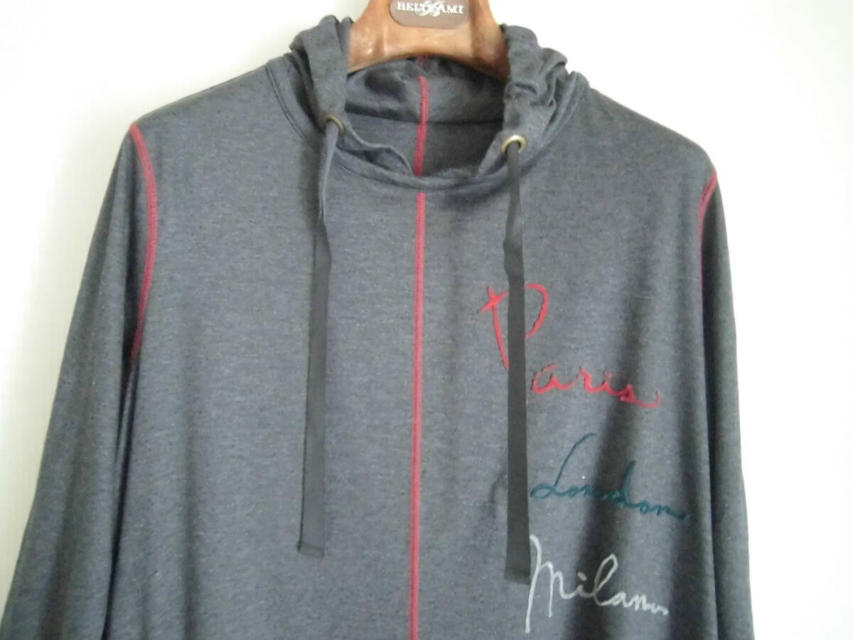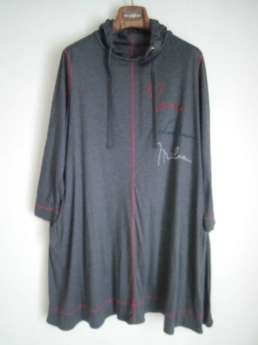 ★着用品の(セラピ)の製品です。 ★色地はグレー、素材はセルロース70%綿30%、サイズ表示は(40)、状態は良好です。 ★実寸は平置きで、(肩幅43)(袖丈53)(脇下身幅51)(着丈87)位です。 ★袖口と裾は2枚合わせなので型の歪みを防いでくれるとおもいます。 |