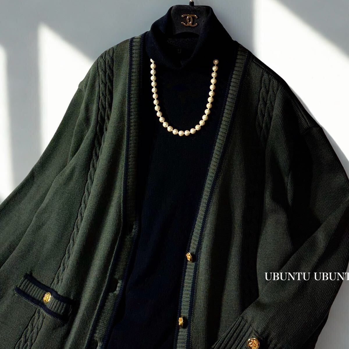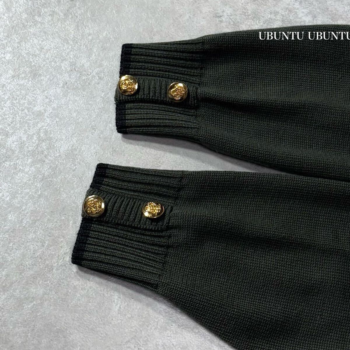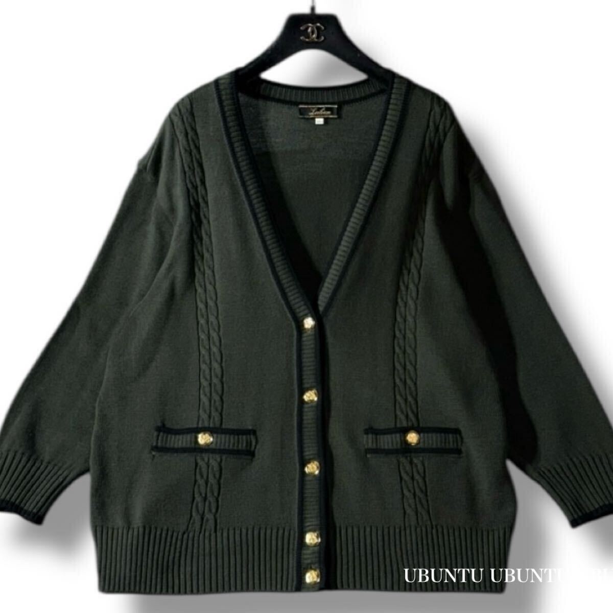 ケーブル編みの立体感、金ボタンのクラシカルなアクセントが高級感を引き立て、スカートにもパンツにも合わせやすい着回し力抜群の一着。