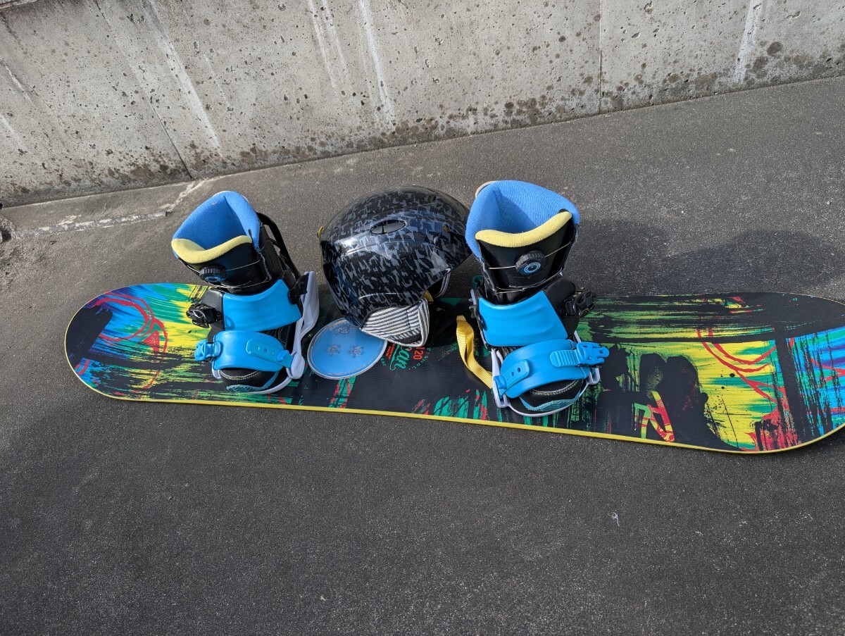 ロシニョールのボード パイン ブーツ ヘルメットのセットです使用感は当然ありますが頻度少なく充分お使い頂けます お使いになるのを躊躇うような状態ではないと思います ノークレームでご検討下さい