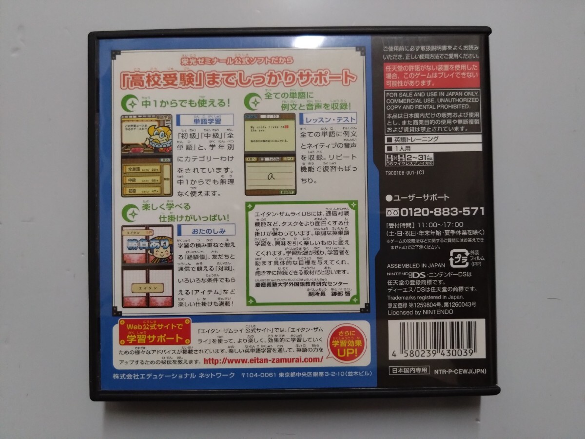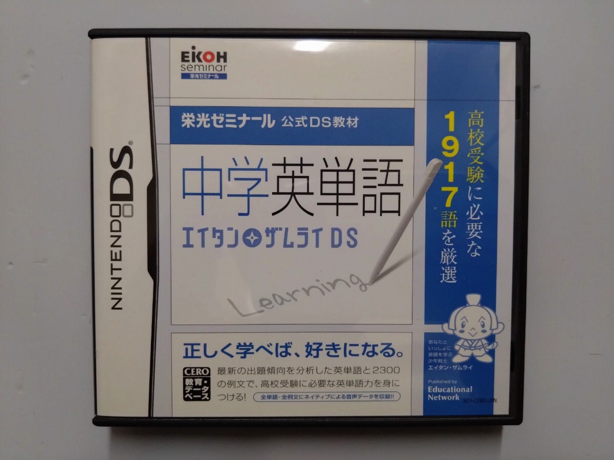 栄光ゼミナール公式DS教材 中学英単語 エイタンザムライDS DSソフト中古です。ソフト、取説、ケースの出品です。中古ですのでキズあります。発送は定形内270円サイズです。中古ですのでノークレームノーリターンです。