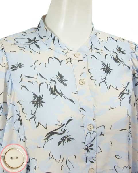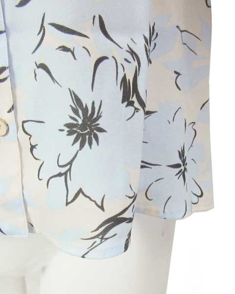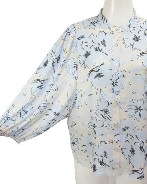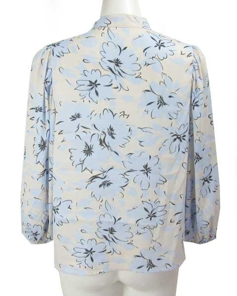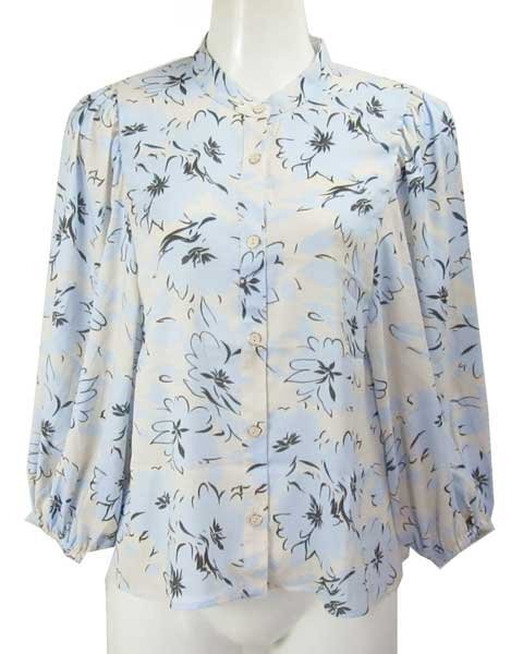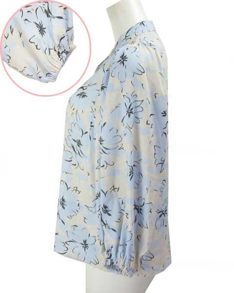 | 爽やかな水色に白に近い薄いベージュの上品なブラウス。パンツスタイルにもスカートスタイルにもあわせて頂けます。さらっとした生地で、お袖部分はゆったりしたデザインで涼しく着て頂けます。 |