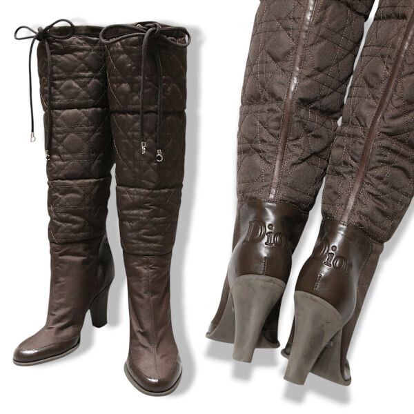 | 良品 ◆超レア◆ 正規品 Christian Dior クリスチャン ディオール John Galliano ガリアーノ ロゴ カナージュ ステッチ ナイロン ロング ブーツ 36 ブラウン | ||||