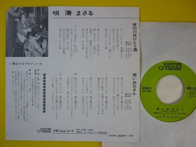 EP◆湊まさる/夜の川反ひとり酒/若いお父さん MR-1005◆編曲:伊藤雪彦,秋田県秋田市 委託盤,自主制作盤,自主製作盤,自主盤 マイナー歌謡 7