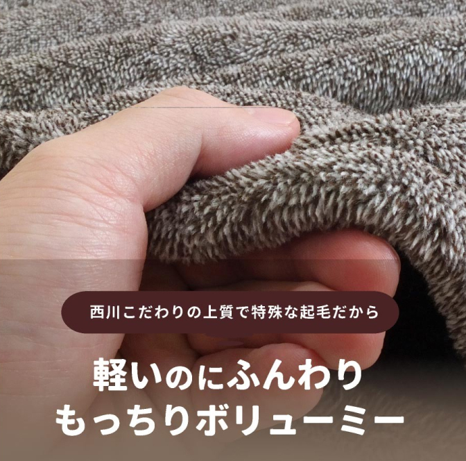 【Point.2】毛皮のミンク調霜降り毛布。 ミンクの毛皮、さし毛とわた毛を イメージしており、豪華さがあります。