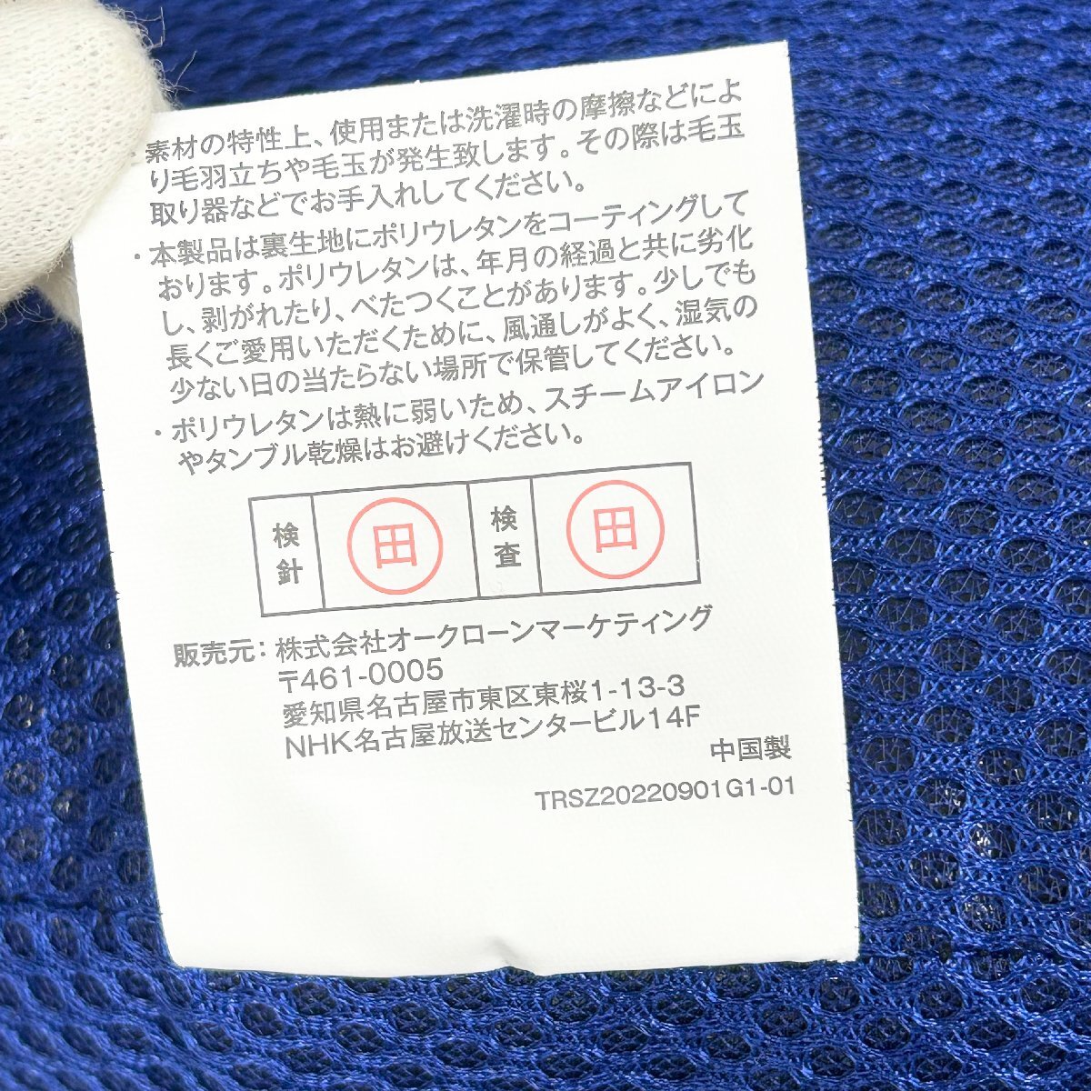 ・縫い目あたりにわずかな糸の飛び出し、小さな汚れ付着