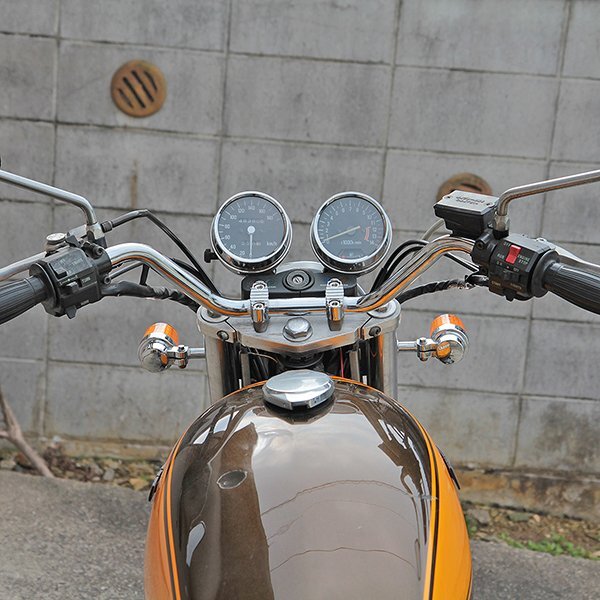 汎用のパイプハンドルです。 カワサキ旧車のノーマルに近いハンドルです。 程よい高さで幅が広く、取り付けた車体が大きく見えるのが特徴です。 幅 ⇒ 約73cm 高さ ⇒ 約13cm *22.2パイ用のハンドルベースに対応します。 スチール製 セット内容 パイプハンドル 1本 |