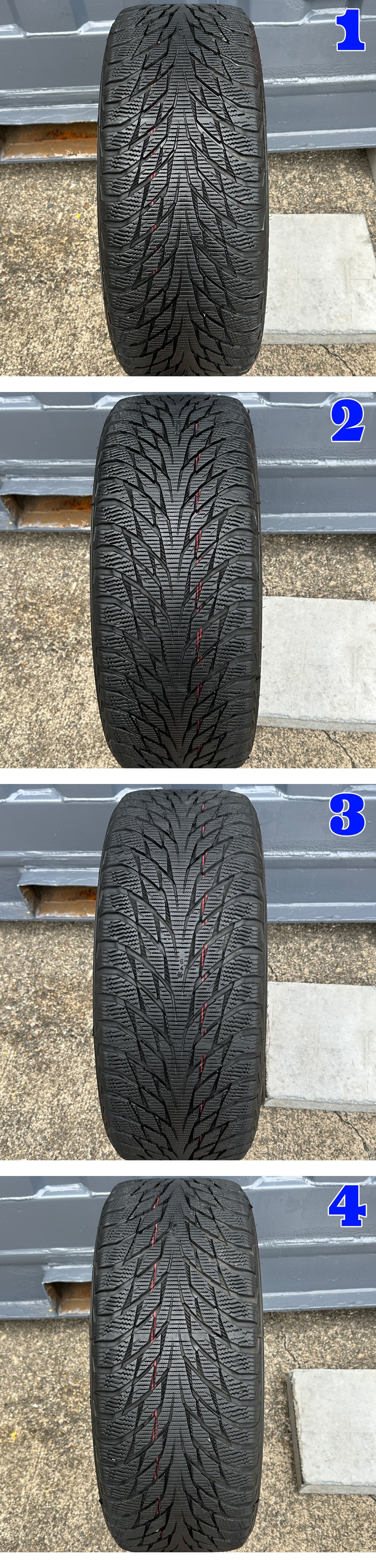 NOKIANスタッドレスタイヤ付き4本セットの出品です。 タイヤの製造年は2017年製になります ![]() powered by auction-labo.com ジャガー純正 ★ホイールのサイズ 17x7J 5H108 オフセット +48.5 ハブ径約63.4mm ★ホイールの状態ですが、ホイール2に5mm径ぐらいの塗装欠けがございます。その他4本とも大きな傷などありませんでしたので、ディスク面を3分割+センター部分の画像をそれぞれアップで撮っていますので状態などご確認ください。もしかしたら多少写っていない箇所もあるかもしれませんので全体の雰囲気としてお考えください。 あくまで中古品ですので画像では分かりにくいキズや汚れなどございます。 適合車種 2015-2023y ジャガー XE ★タイヤのメーカー NOKIAN HAKKAPELIITA R2 スタッドレス ★タイヤサイズ 225/50R17 ★製造年 1本目 2017年16週 2本目 2017年16週 3本目 2017年16週 4本目 2017年16週 ★タイヤの溝 1本目 約6.2mm / 2本目 約6.6mm / 3本目 約6.3mm / 4本目 約6.5mm ※上記数値はタイヤのセンター部分で計測 ※経過年数による経年劣化や若干の片べりが見受けられますので画像をよく見て判断してください。 ★エアー漏れやパンクはありません。 ※あくまでも中古品ですので、画像をよく見て参考にして判断してください。(携帯等でご覧の方は必ずご入札前にパソコンで画像をご確認ください) ※気になる事があればご質問よりお気軽にお問い合わせください!! ★ガレージYAMADA(株式会社YAMADA) 愛知県津島市百島町字三正六歩29-2 TEL 0567-28-4649 FAX 0567-28-4749 定休日 日曜日 営業時間 午前10時~午後19時 インスタ 【 garage_yamada_official 】 ブログはこちらをクリック!! 【管理番号】YAM-5H108-01 注意事項 |