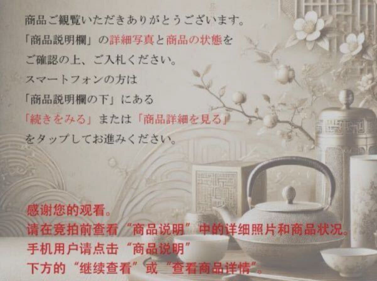 4、本站为日拍、代拍平台,商品的品质和卖家的信誉需要您自己判断。请谨慎出价,竞价成功后订单将不能取消。