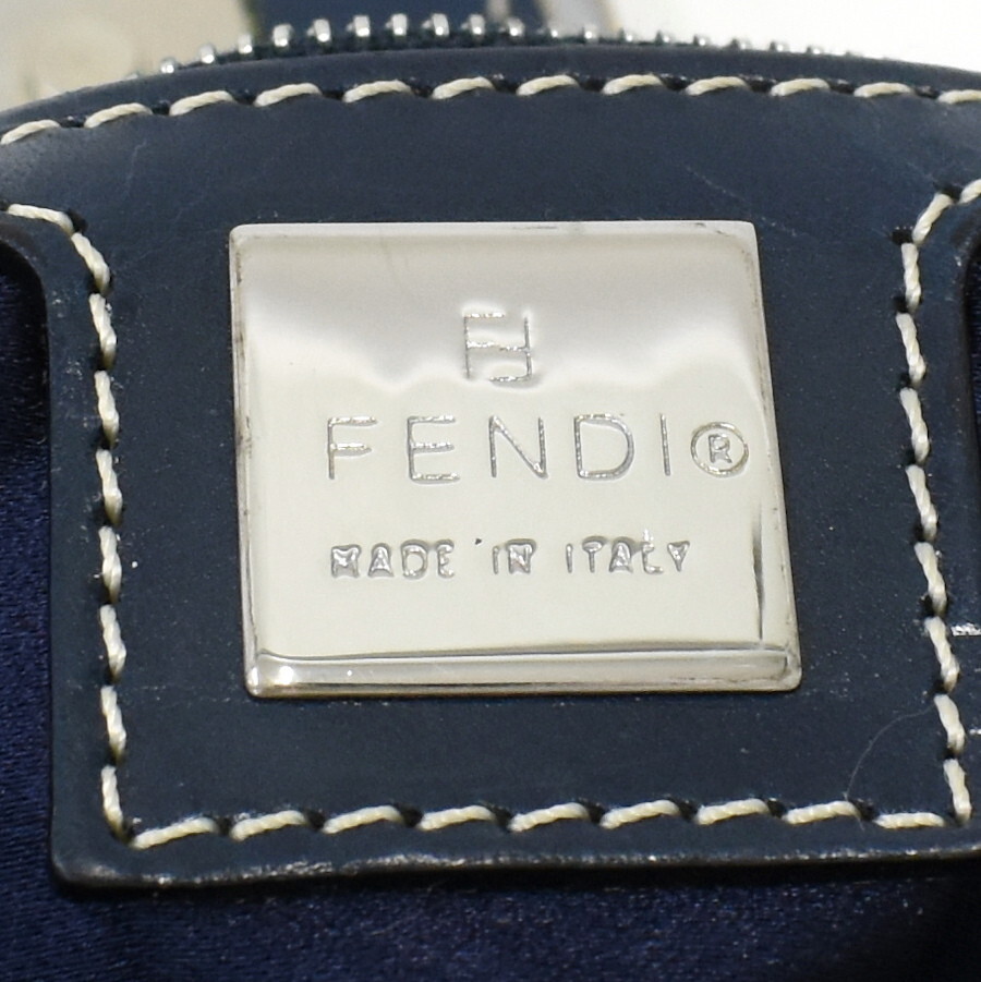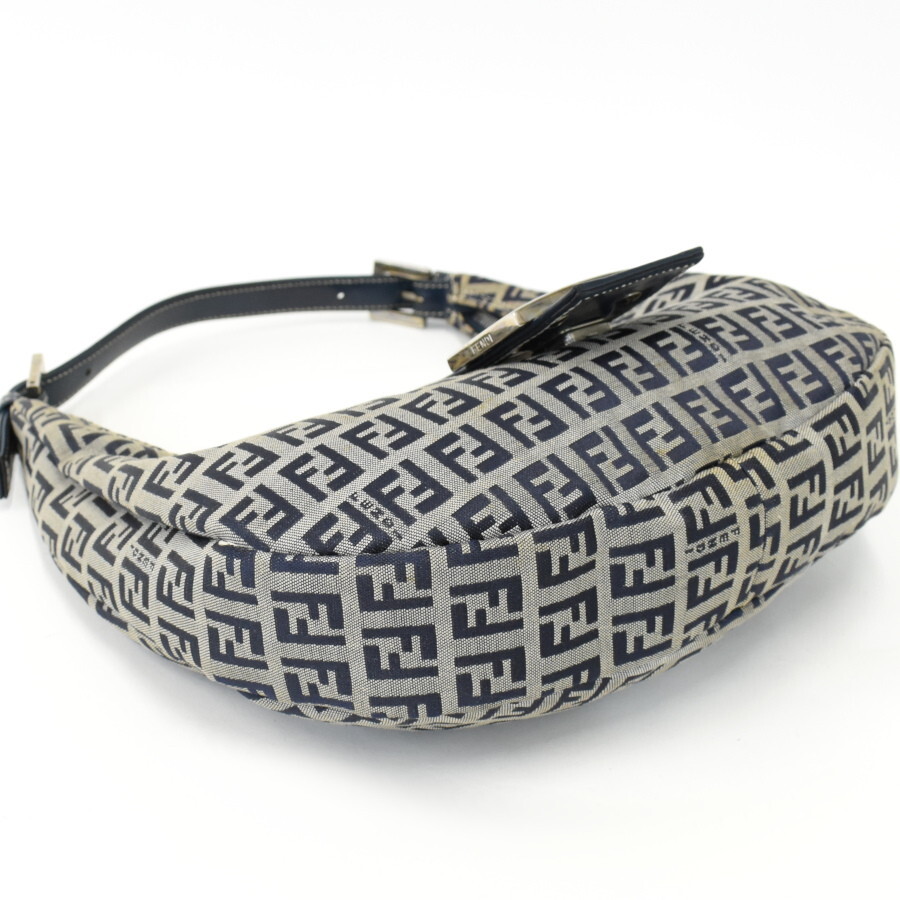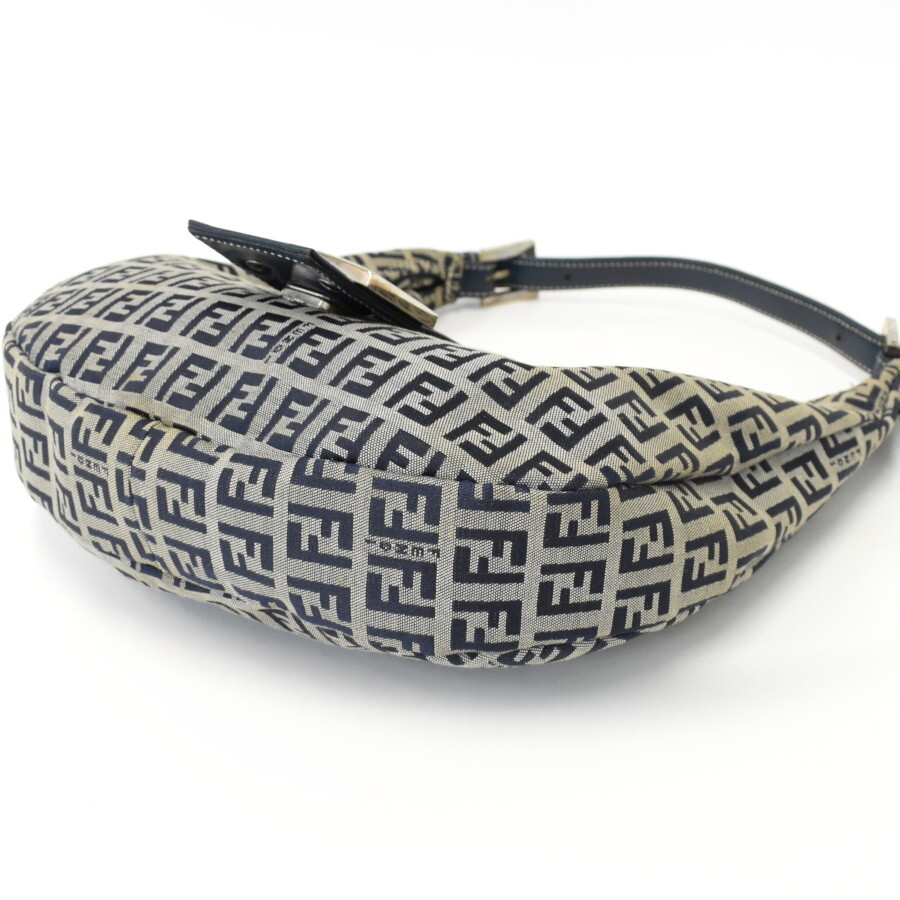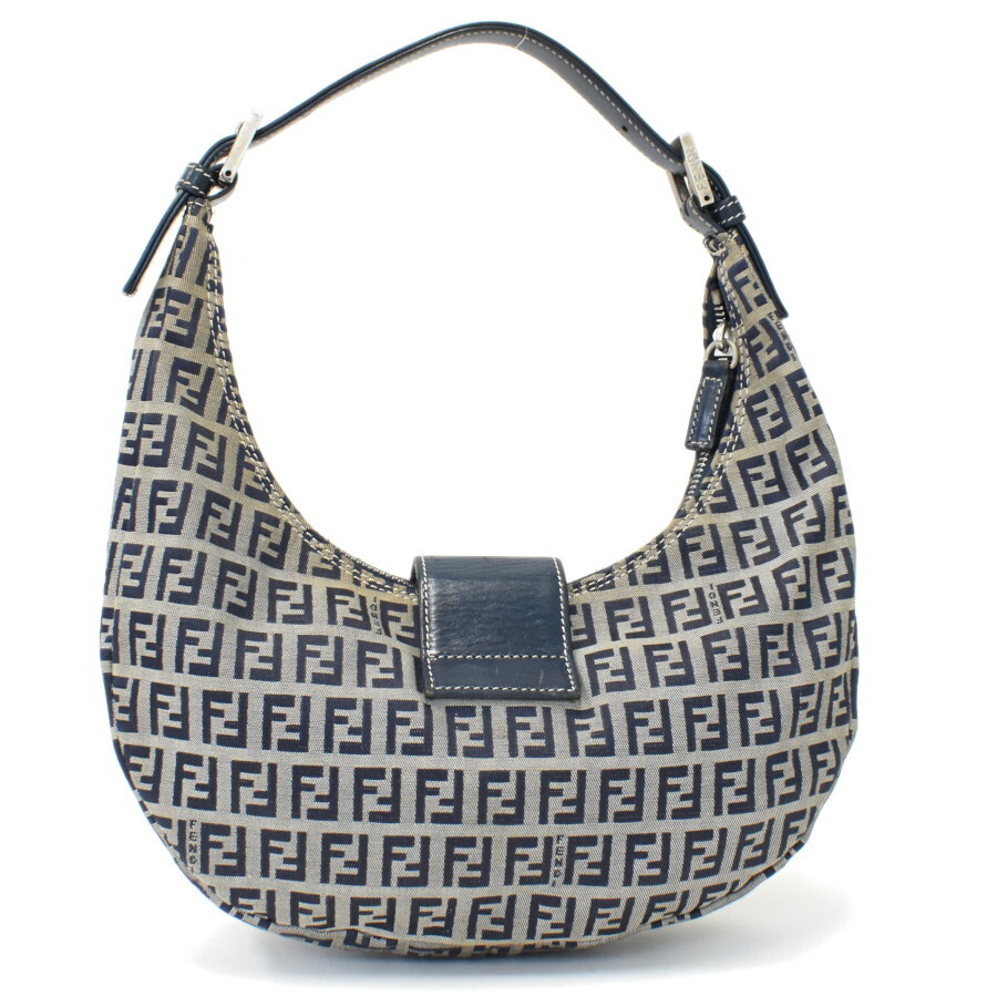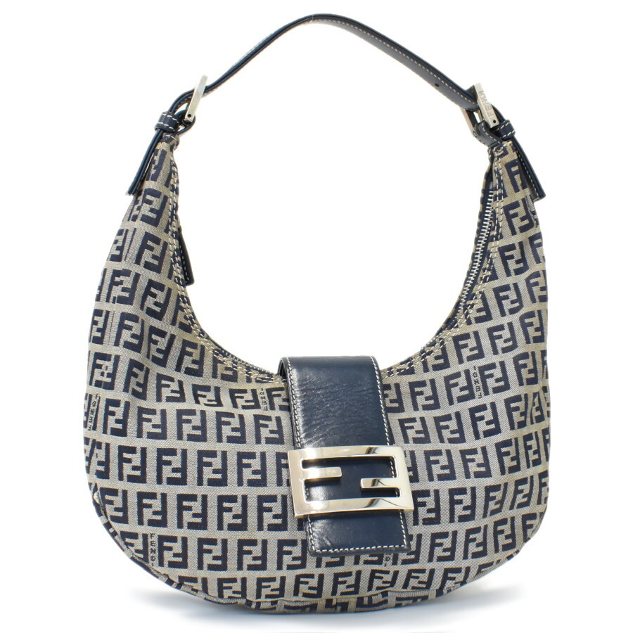 1円◎良品/FENDI/フェンディ/ワンショルダーバッグ/ハーフムーン/FF金具/ズッキーノ/キャンバス/レザー/ネイビー/グレー◎E.Cgl.zE-12