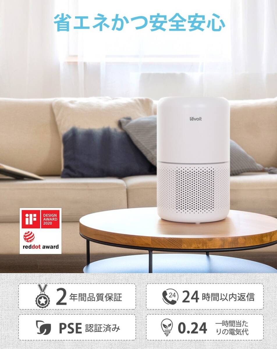 【静かで省エネ、つけっぱなしでも大丈夫! 】特許取得済みのサイレントテクノロジーと特殊の風道設計で運転音を24dBに低減し、同時に、画面表示オフ機能も搭載されているので、光に敏感な方でももぐっすり眠れます。静音の上におやすみモードの電気代は1時間たったの0.25円ですので、つけっぱなしにしても気になりません。