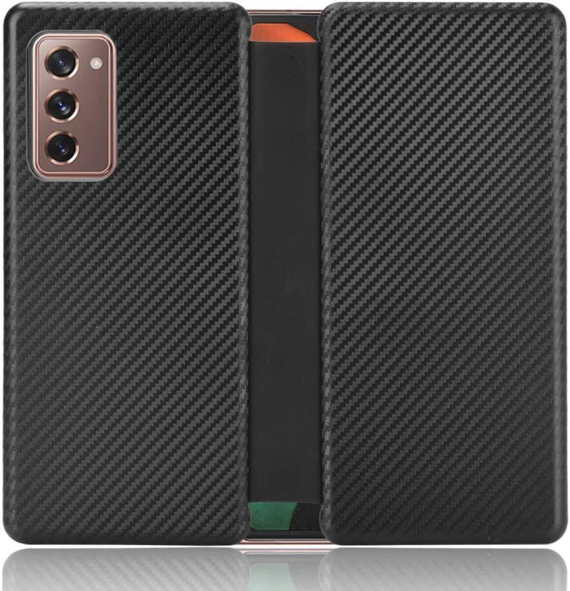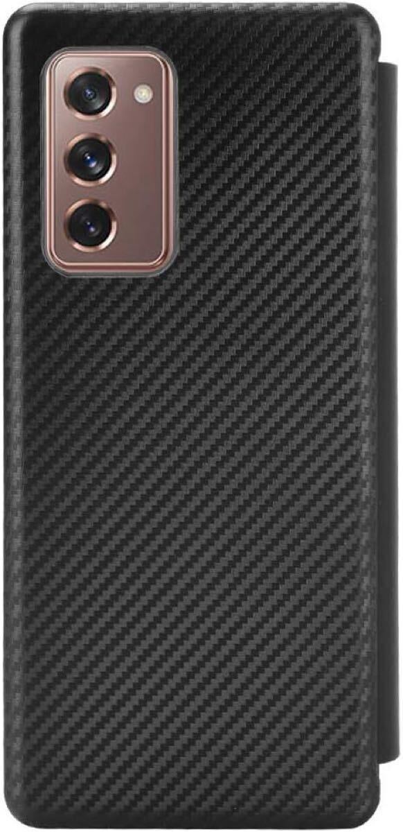 Galaxy Z Fold 2 5G ケース 手帳型 薄型 炭素繊維カバー TPU 保護バンパー galaxy z fold2 SCG05 専用カバー 財布型 マグネット式 カード収納 落下防止 サムスン ギャラクシー ゼット フォールド2 フリップケース (Galaxy Z Fold2, ブラック)