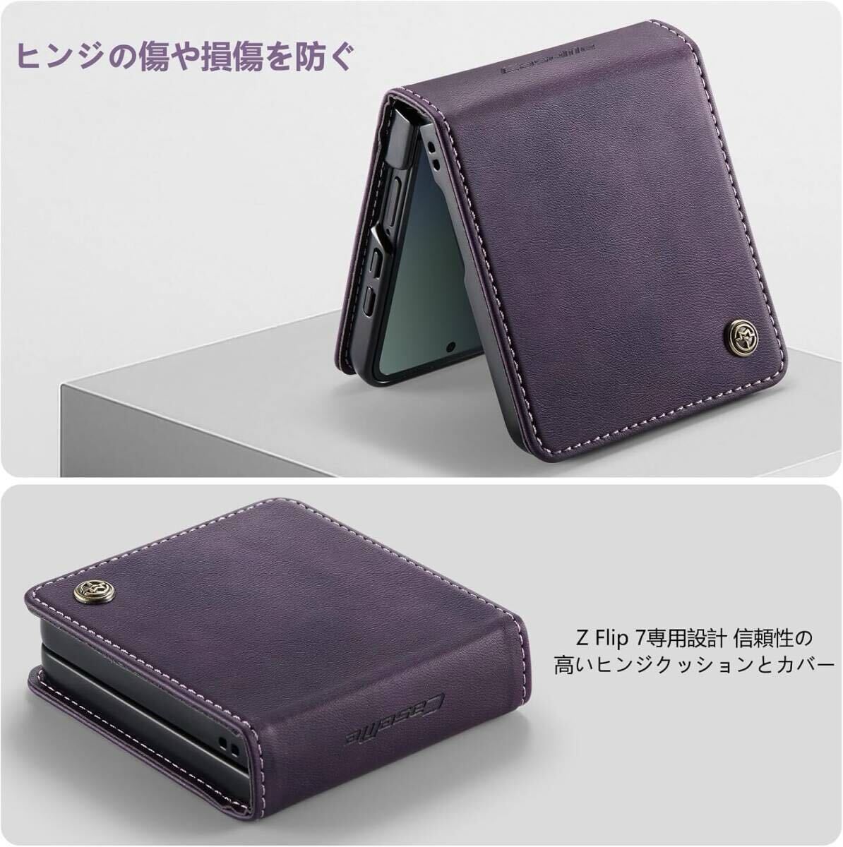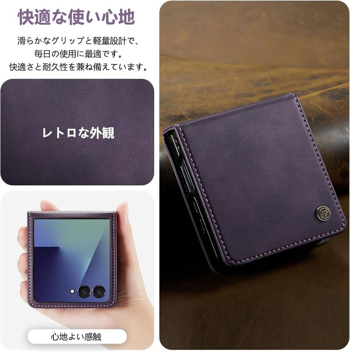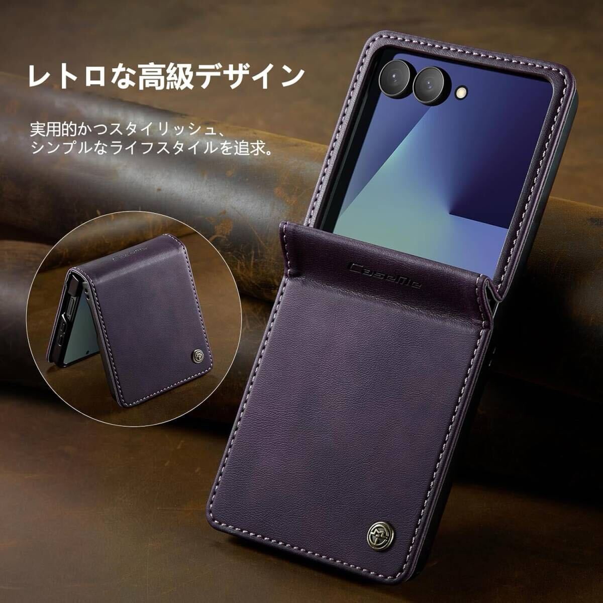 Samsung Galaxy Z Flip7 対応 ケース ギャラクシーZフリップ7 PUレザーケース 携帯便利 衝撃防止 擦り傷防止 背面保護 実用性高 レトロ カバー Galaxy Z Flip7 保護ケース パープル