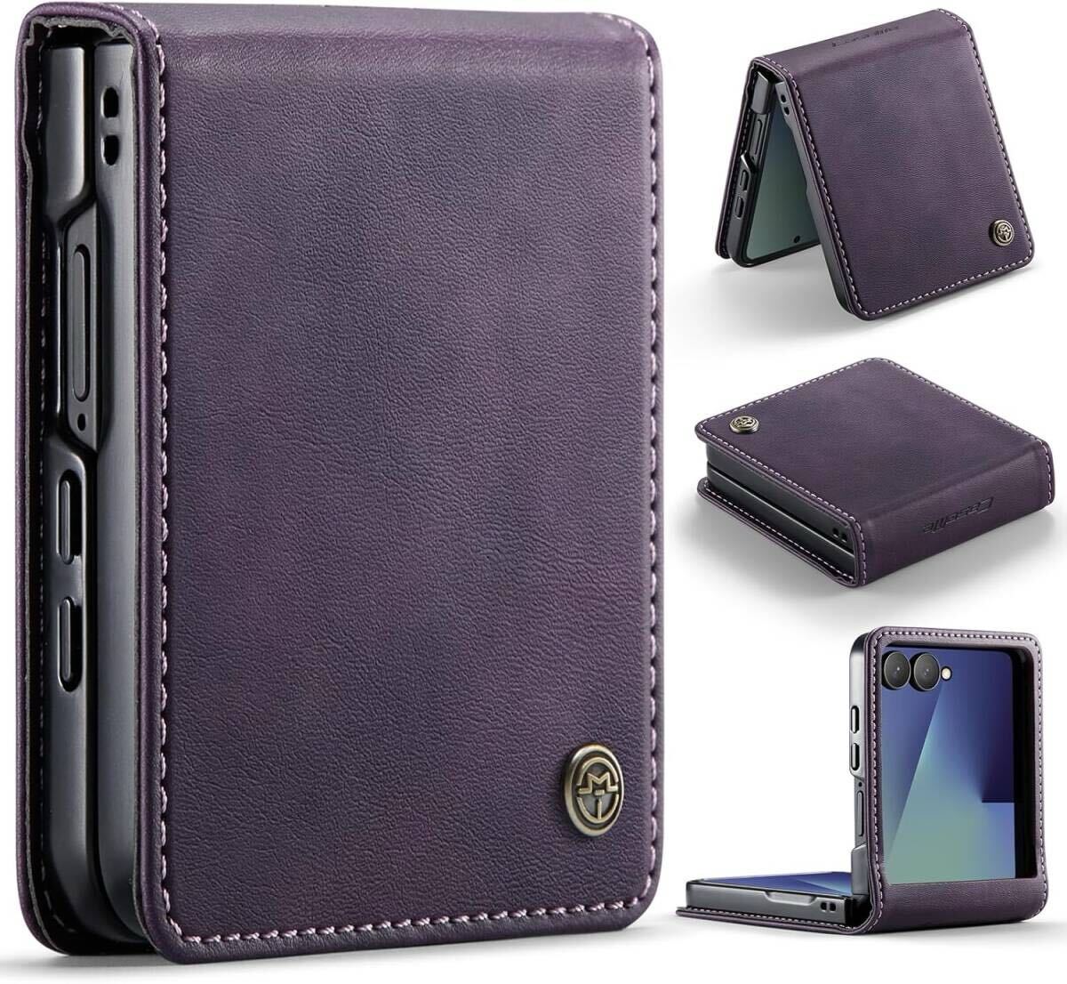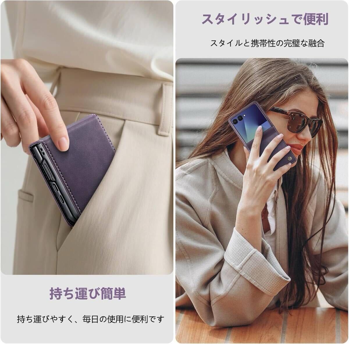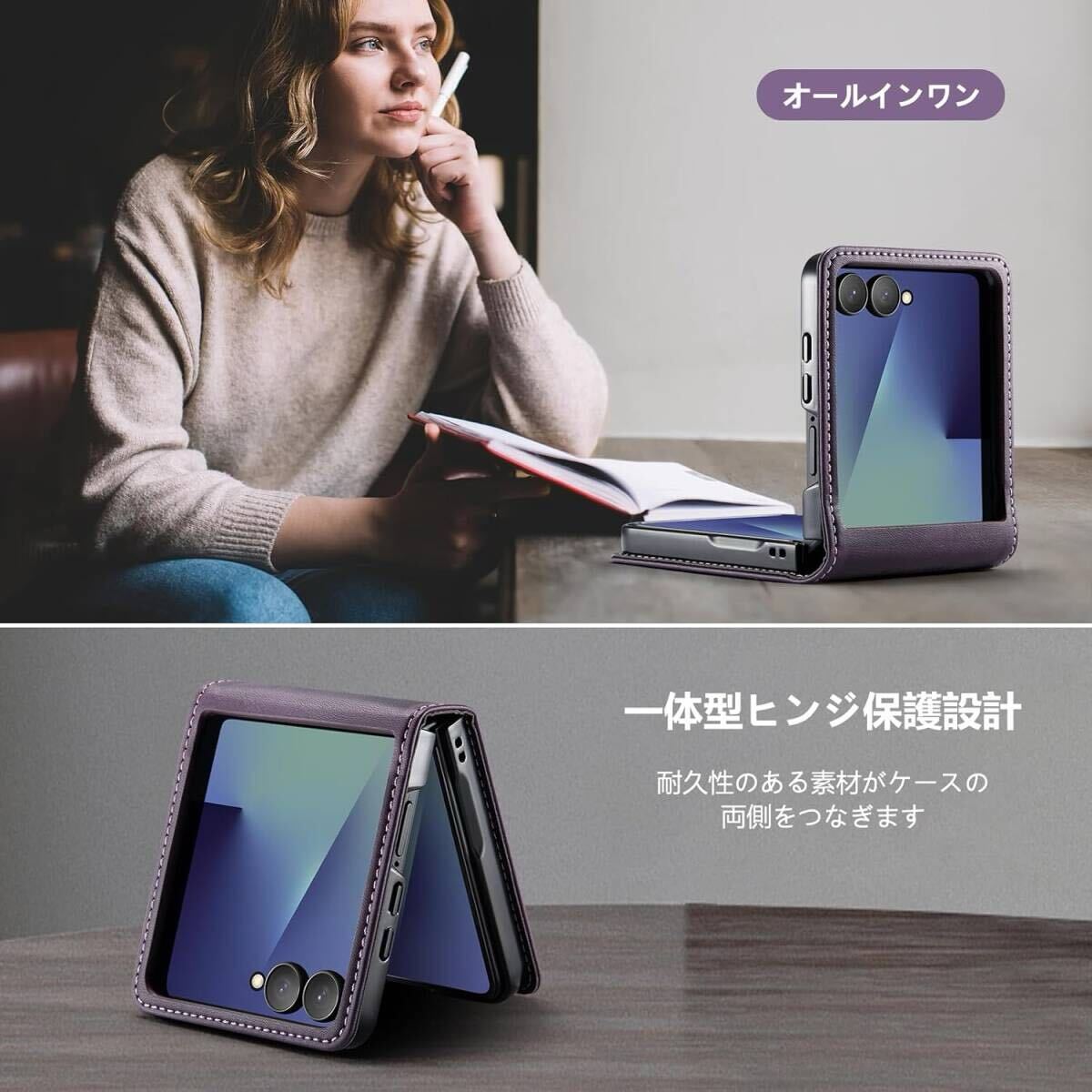 Samsung Galaxy Z Flip7 対応 ケース ギャラクシーZフリップ7 PUレザーケース 携帯便利 衝撃防止 擦り傷防止 背面保護 実用性高 レトロ カバー Galaxy Z Flip7 保護ケース パープル