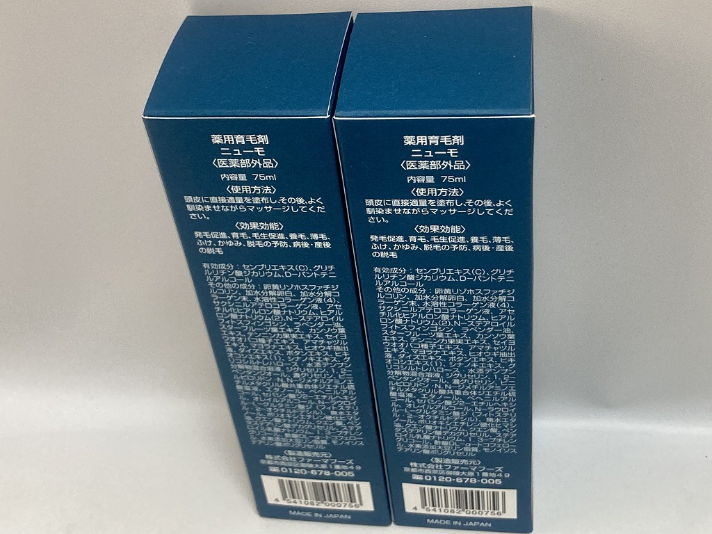 ファーマフーズの薬用育毛剤 ニューモ 2本セットです。 未使用のまま自宅にて保管していたものとなります。 ■ 注意事項 落札前に必ずこちらをご確認ください。 当店の商品を落札された場合、こちらの「注意事項」に同意いただいた事とさせていただきます。 オークション終了後の返信は原則3日以内、入金は5日以内にお願い致します。もし全くご連絡がなく、この期間を守っていただけない場合は、「落札者様都合で削除」とさせていただきますのでご注意ください。 ■お客様都合による、商品の返品および交換は承っておりません。 ■中古商品は一点ものです。交換・サイズ変更などはできません。 ■開封済みのものは、汚れやシミがあるモノがございます。写真をご覧の上、ご判断下さい。 ■お客様のお使いになられているモニターや端末等によって、色が異なって表示される場合がございます。 ■素人による検品となり、細かい点での見落とし、製品について勘違いなどがある場合がございます。基本的に写真の状態での現状品でのお渡しになりますので気になる点がある方は、必ずご質問下さい。 付属品の状態、写真に写っていない部分や・説明文に記載されていない付属品や傷・汚れ等の有無につきましては、免責事項とさせていただきますので、ご了承ください。 ■掲載写真や説明と、説明欄の写真や説明が違う場合があります。こちらが記載ミスをしてしまう可能性もありますので、タイトルと写真・説明におかしい点があれば質問などで確認をいただけると助かります。 ■状態を極度に気になさる方、神経質な方はご入札をお控え下さい。 ■ご質問などございましたら、答えられる範囲内でお答えいたしますが、専門的で分からない質問にはお答え出来かねる場合がございます。 ■当商品は買取による中古品となります。 ■ブランド品の真贋に関しては、お客様の判断による返品は、お受け致しかねます。正規店にてご確認いただき、取り扱い不可の際は全額返金致しますので、確認をいただいた店舗名など詳細をお知らせください。 ■商品タイトル・説明欄に『ジャンク/現状品』記載のある商品は基本的に動作の確認をしておらず、故障や不備等によるご返品をお受け出来ません。 動作の確認をしているものも、数秒~1分程度の確認となりますので、長時間の使用による不備等がある可能性があります。現状品と記載がある商品は動作の確認事項も再現性がない可能性があることをご理解の程よろしくお願いいたします。 ■ご返金は、商品をご返送いただいた後、状況の確認等が終わり次第、ご指定の銀行口座へのお振込となります。※不備の確認が出来ない場合は、送料お客様ご負担にて再度発送致します。 ■発送に関して、基本的に入金後1~2日程度で発送予定ですが、お休みをいただく場合があります。お急ぎの方は出品リストページの上部にある自己紹介に休みの期間を記載していますので、念のためそちらをご確認ください。 ■誠に残念ではありますが、新規および評価の悪い方の入札はトラブルが多いため、当方の判断にて削除させて頂く場合がございます。但し、これらの方の中で、購入の意思が強い方は、その理由とともに質問欄よりお伝えくだされば、入札をお受けする場合もあります。 トラブル回避の方策故、以上ご理解ください。 |