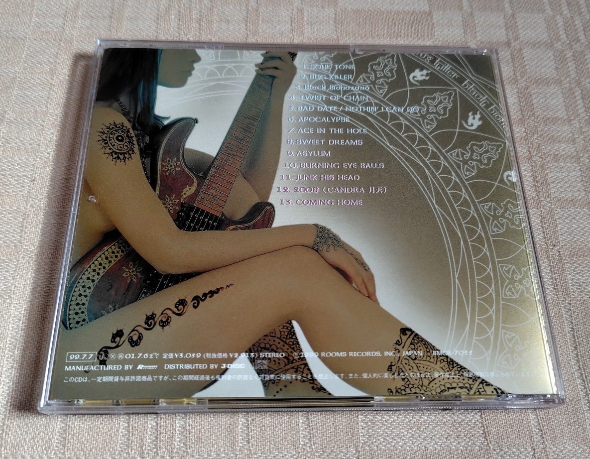 1999年ROOMS RECORDS(BMCR-7035) ●状態● CD、薄いスリキズ・擦れ多少あり ジャケットに多少色あせ・指紋跡あり ケース良好です 帯はありません レンタル使用品ではありません ●収録● 1. ソウル・トーン(インストゥルメンタル) 2. バグ・キラー 3. ブラック・バイオハザード 4. ツイスト・オブ・チェイン 5. バッド・デイト / ナッシン・アイ・キャン・ドゥ 6. アポカリプス 7. エース・イン・ザ・ホール 8. スウィート・ドリームス 9. アサイラム 10. バーニング・アイ・ボールズ 11. ジャンク・ヒズ・ヘッド 12. 2008(CANDRA 月天)(インストゥルメンタル) 13. カミング・ホーム |