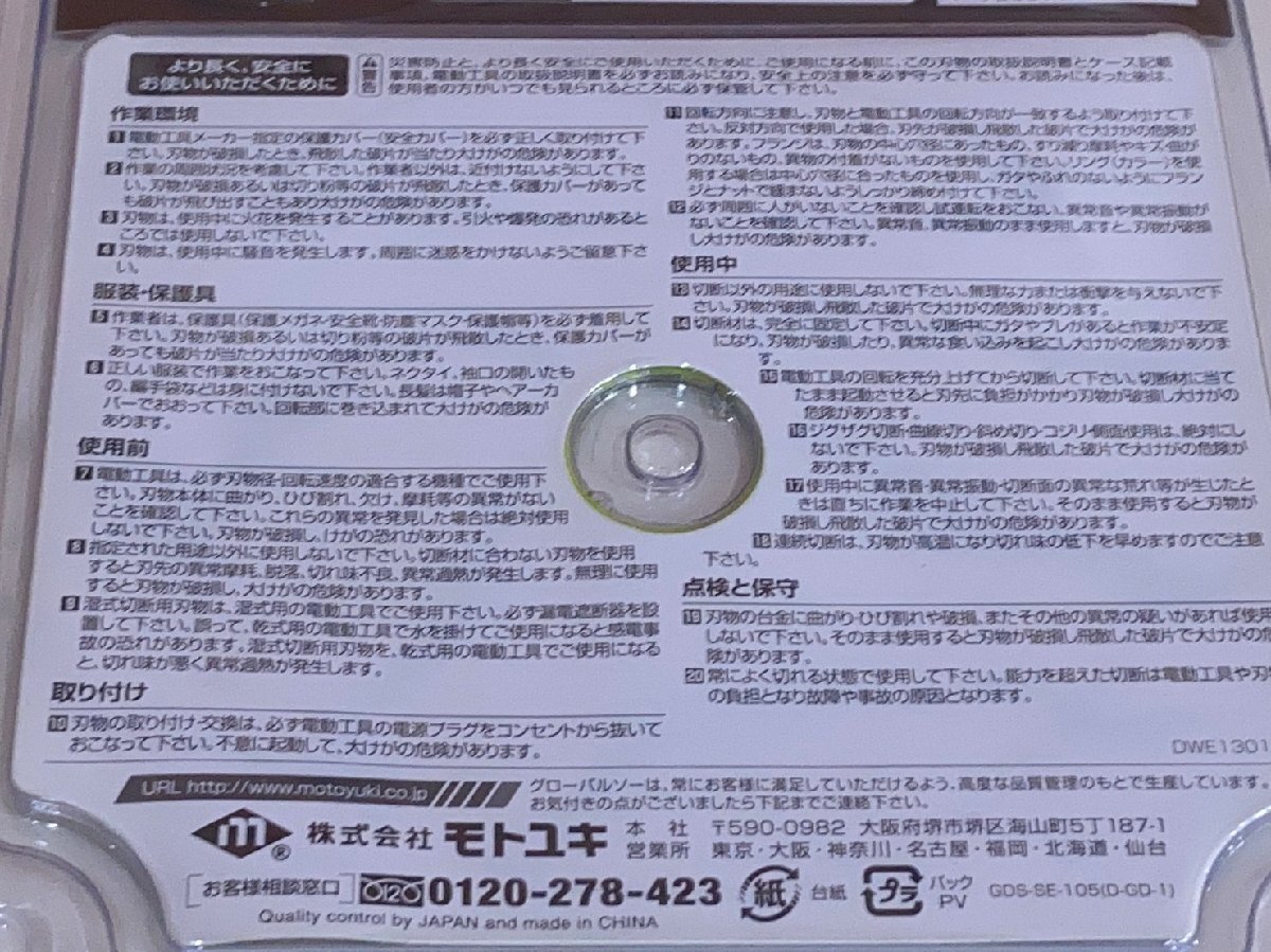 | [モトユキ]グローバルソー 105mm コンクリート用ダイヤモンドカッター GDS-SE-105 4枚セット 未開封品 | ||||