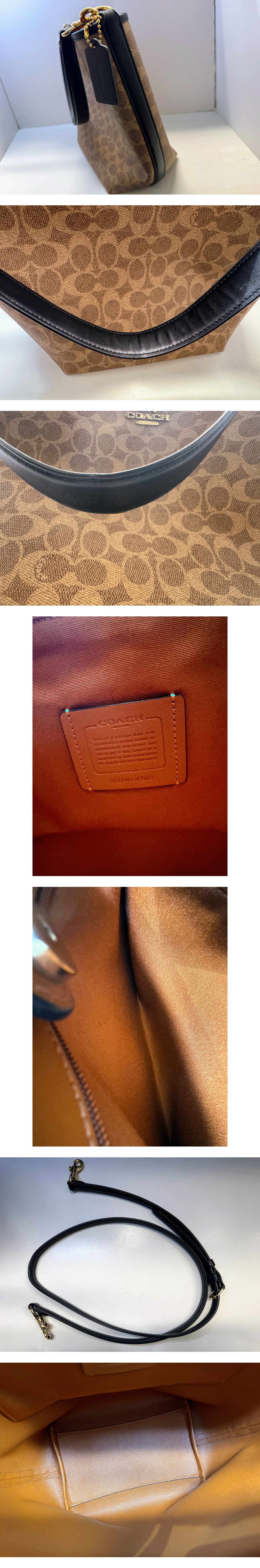 | 102915 ★ COACH コーチ CT802 シティ ラージ バケット トートバッグ シグネチャー キャンバス ベージュ×ブラック ◆ | ||