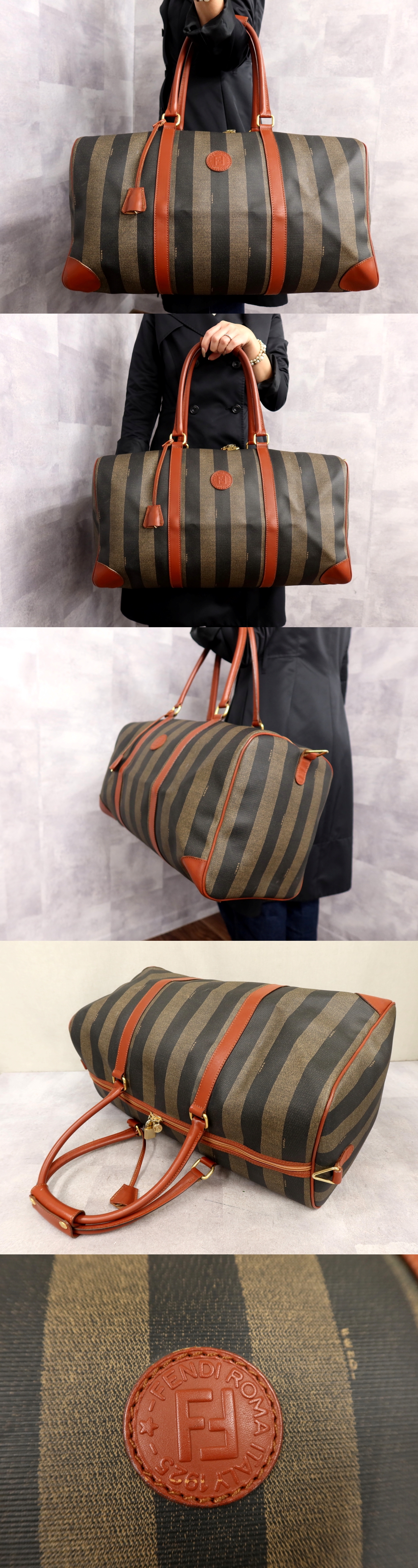 ●超美品●FENDI フェンディ●ペカン●FFロゴ●ストライプ柄●PVC カーフ レザー 本革●ボストン バッグ●黒 ブラウン●G金具●Js63742 [浏览原始页面]