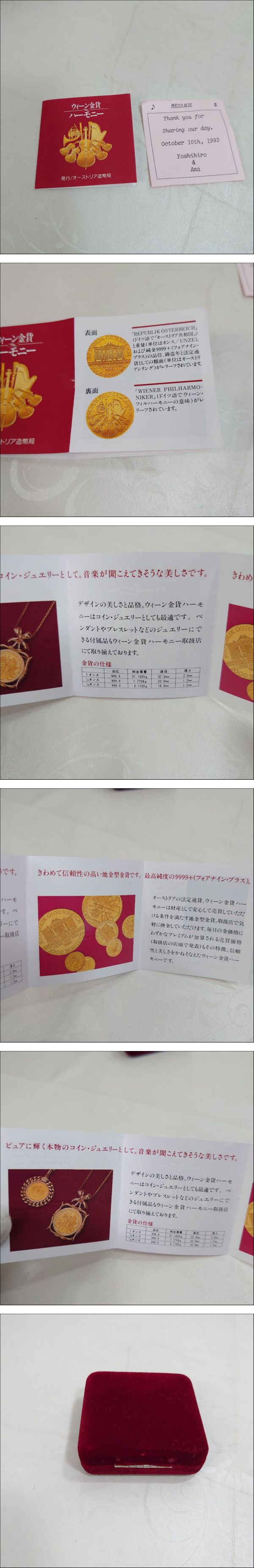 0105A ウィーン金貨 ハーモニー 1993年 1/10oz オーストリア造幣局 3.1g | |||