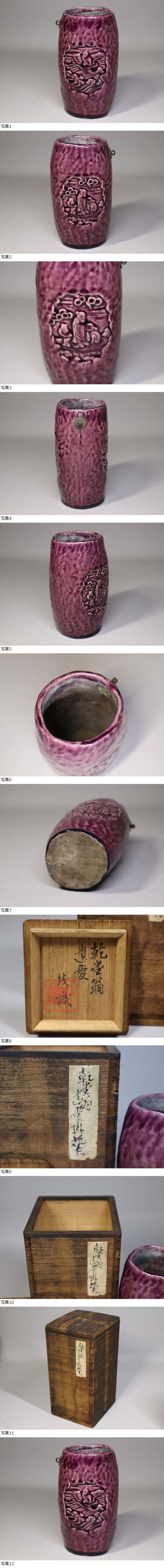 紀州徳川家 御庭焼 偕楽園製 紫交趾釉掛花入 小曽根乾堂翁遺愛品です。古作ですので経年の小いたみはありますが全体的には大変に状態良好です。美しく見事な出来栄えです。