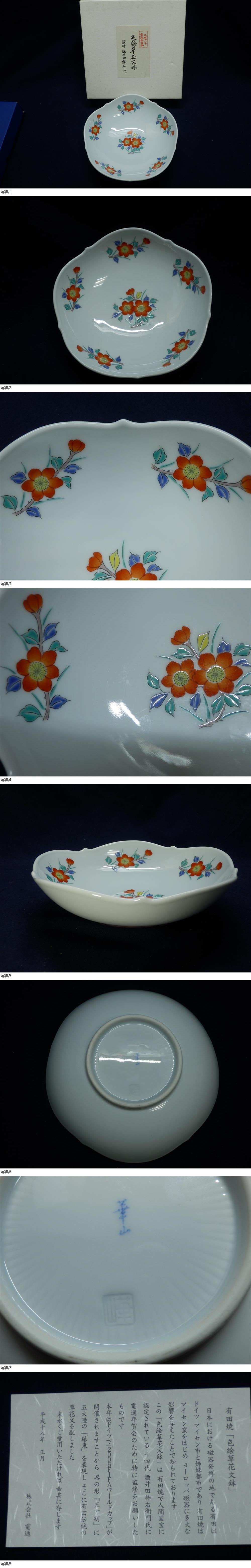 人間国宝 【十四代 酒井田柿右衛門】 監修 有田焼 「色絵草花紋鉢」 約18.5x5cm