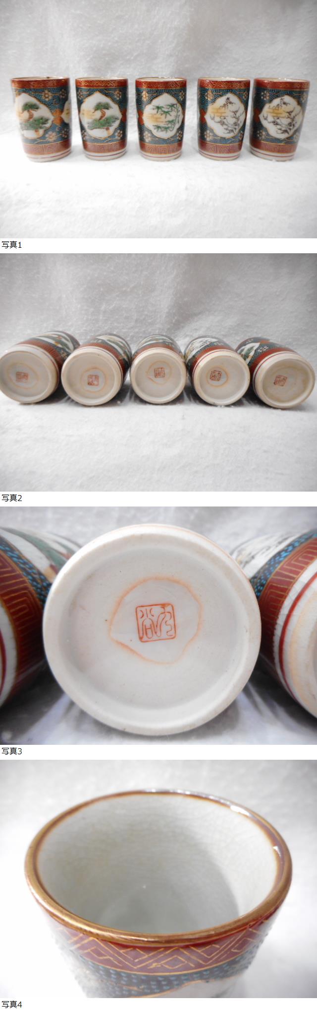 | ◇昭和レトロ 九谷焼 急須 湯呑 5客 青粒 松竹梅 金彩 湯呑 煎茶道具 茶托 茶器 茶道具 日本陶芸 伝統工芸美術品 USED品 |