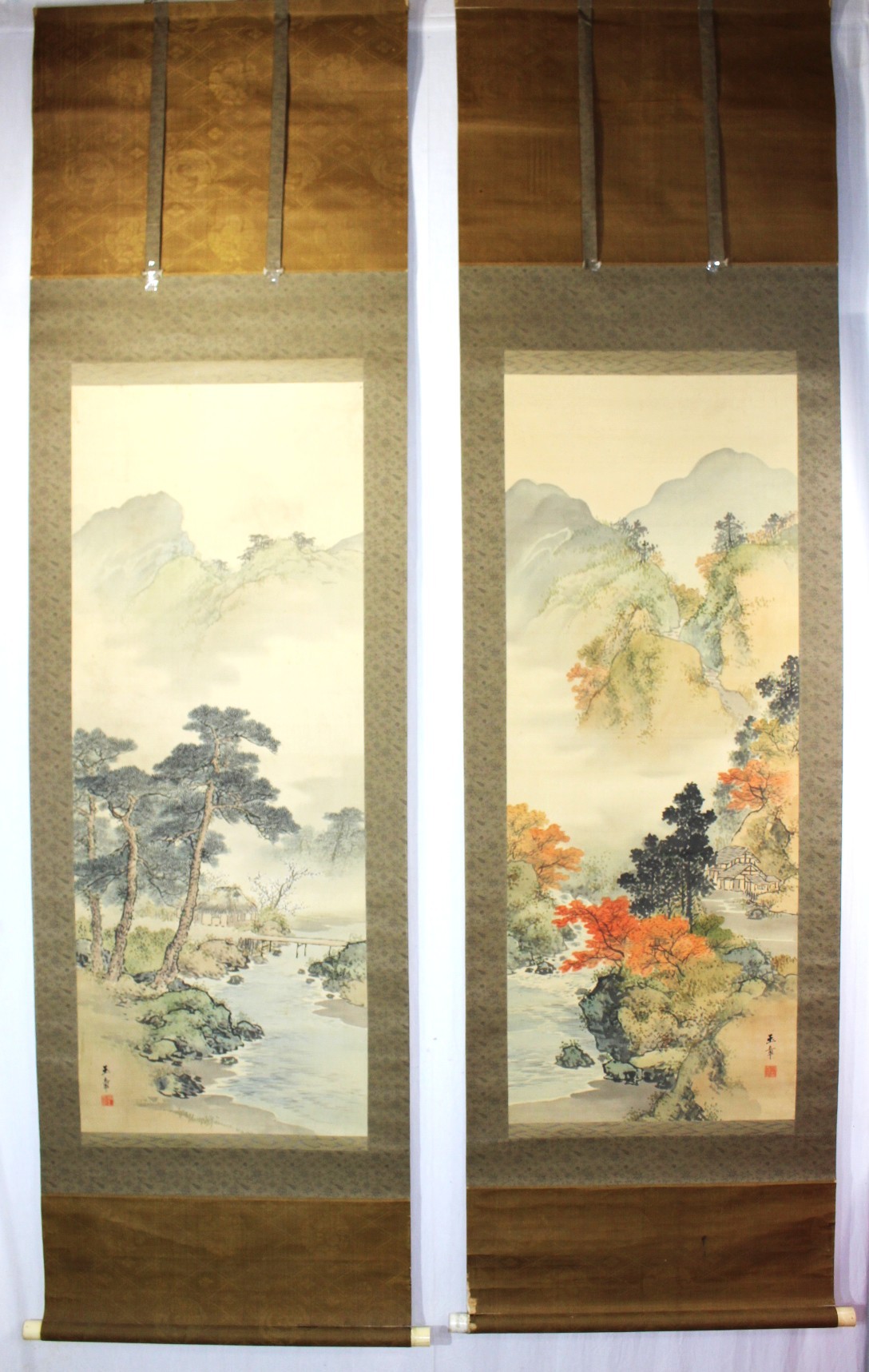 作品は二幅とも絹本でヤケ.薄シミが見られます