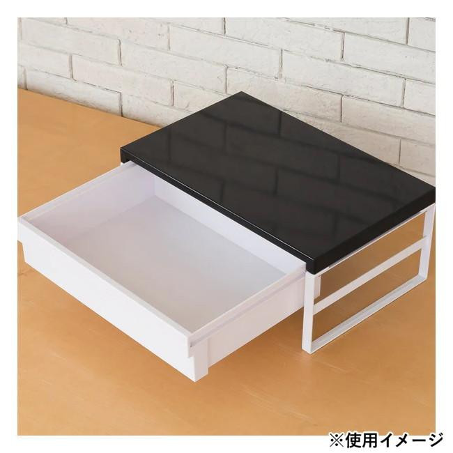 | 高さ160mmのハイタイプに便利な引出し付の机上台。引出し付き机上台で机上の収納力アップ。小物がさらにスッキリ片付きます。 ※商品は組み立て式です。付属の工具で簡単に組み立てられますが、取扱説明書・組立説明書をよくご参照の上組み立てて下さい。 ※特に1天板、2脚、3レールの順番で重ねてネジ止めしますが、レールと脚の順番を間違えると引出しが入らなくなります。 |