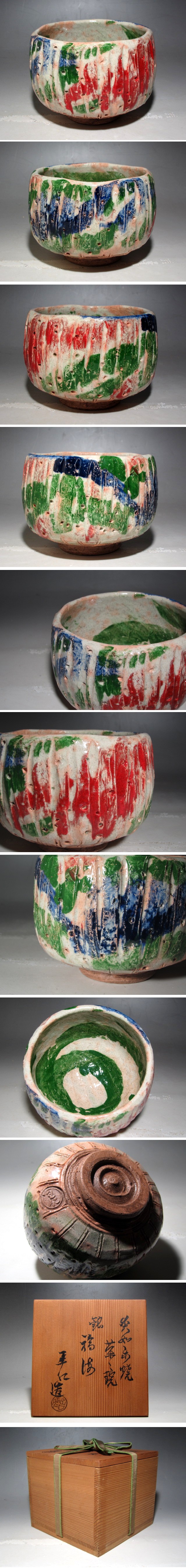 出口王仁三郎(大本教教祖)作の茶碗です。 素晴らしい景色の貴重な逸品です。 サイズ 直径11.5cm/高さ8.5cm(多少の誤差はお許しください) 状態 一見して疵やヒビ・直しは見られません。 骨董品という事をご勘案頂き、時代経過のスレや、小さな傷がある場合があるかもしれませんのでご承知置きください。 | |||
