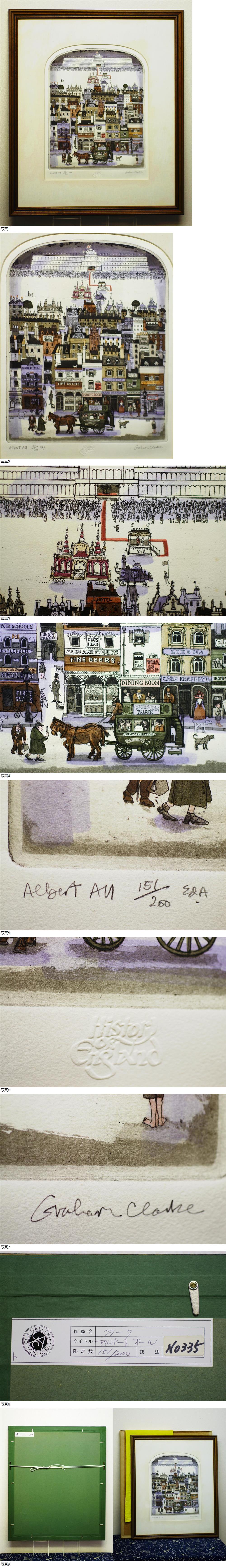 グラハム・クラーク(Clarke Graham) 1941年 イギリス生まれ。 ヨーロッパの街並みや田園風景を アーチ型で表現するイギリス人画家。 1987年に来日記念展を開催後、 阪神淡路大震災チャリティー版画 「ヴィンテージ・ポート」の制作や、 広島原爆病院への水彩画「平和の鳩」の 寄贈など日本とのかかわりを深める。 1993年最優秀芸術家に贈られる 「アーティスト・オブ・イヤー」を受賞。 バッキンガム宮殿にシリーズ作品が展示。 2012年ロンドンオリンピック記念作品を制作。 |