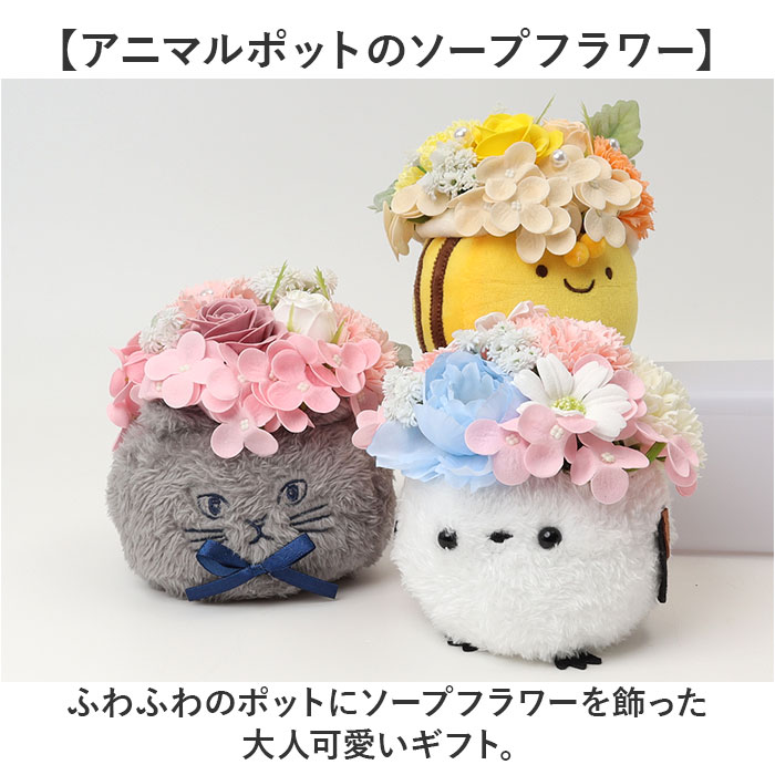 | 商品説明 | ・・【アニマルポットのソープフラワー】 ・ふわふわのポットにソープフラワーを飾った大人可愛いギフト。 ・【可愛いポットが主役の癒し花】 ・ふわもこネコとコロンとしたミツバチのポットに華やかなソープフラワーを飾った癒しの一品。 ・【お手入れいらずの石鹸のお花】 ・石鹸素材でつくられたお花だからお水やお手入れは一切不要で、美しい姿がずっと長く続く◎ ・【透明ボックスでそのまま贈れる】 ・中身が見える透明ボックス入りだからラッピング不要で、そのまま手渡しできるギフト仕様! ・【ちょこんと飾れる手頃なサイズ】 ・手のひらにちょこんと収まるサイズ感だから、デスクや棚のすき間にもさりげなく飾れる可愛さ♪ ・【母の日やお祝いにぴったり】 ・母の日やお誕生日のお祝いはもちろん、ちょっとした感謝の気持ちを伝える贈り物にも最適〇 |