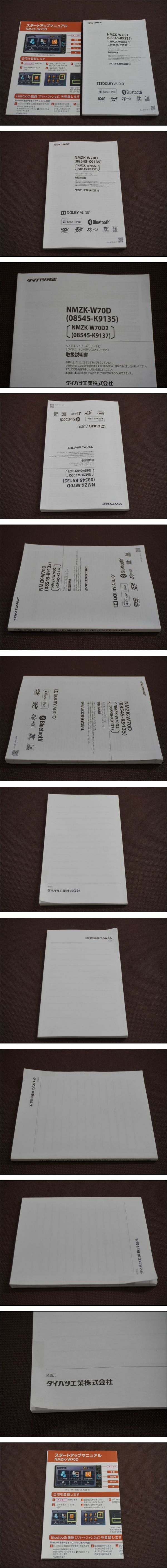 | 商品説明 | ●ダイハツ純正 ワイドエントリーメモリーナビ NMZK-W70D(08545-K9135)/NMZK-W70D2(08545-K9137) 取扱説明書 (スタートアップマニュアル付き) 中古品 ●多少の使用感があり、薄汚れや擦り傷、折れ跡などがあります。掲載した画像にて状態の確認をお願い致します。 ●掲載した画像にて確認できるかと思いますが、裏表紙の下部に折れ跡があります。