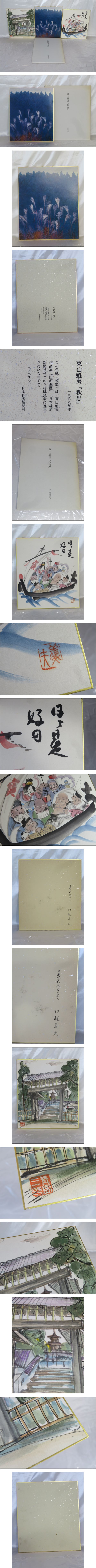 | 真作【絵画】 東山魁夷『 秋思 』複製・村越 義夫 宝船 七福神・青島 三郎 色紙画 水彩画 風景画 3点 現状品 | ||