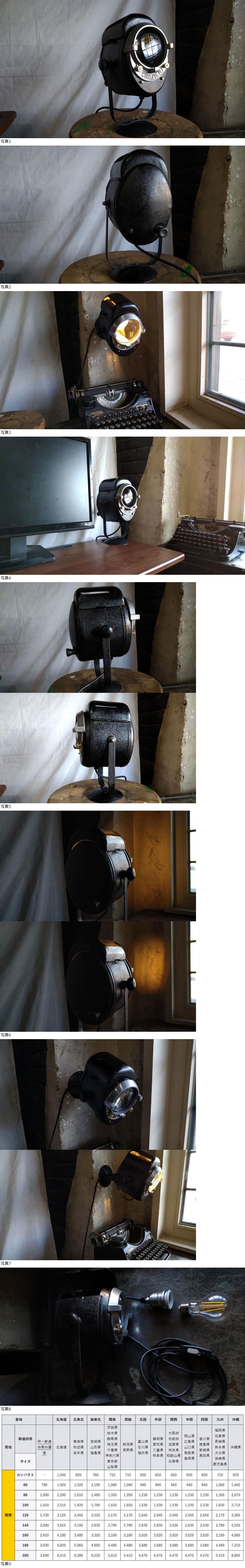 ・写真に写っているランプ以外(テーブルやタイプライターなど)は付属いたしません。