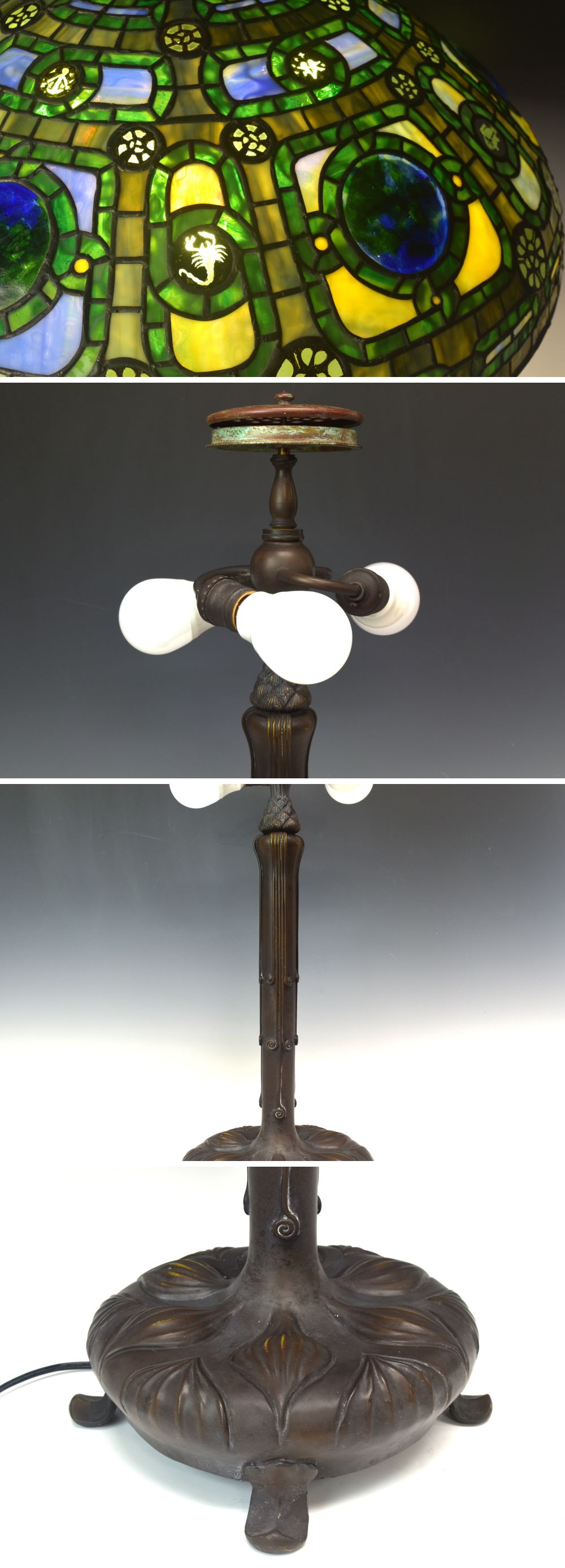 | 商品名 | 時代 大型 細密ステンドガラス ブロンズ台ランプ 高さ67cm 重量10,6kg B2251【趣楽】 | ||