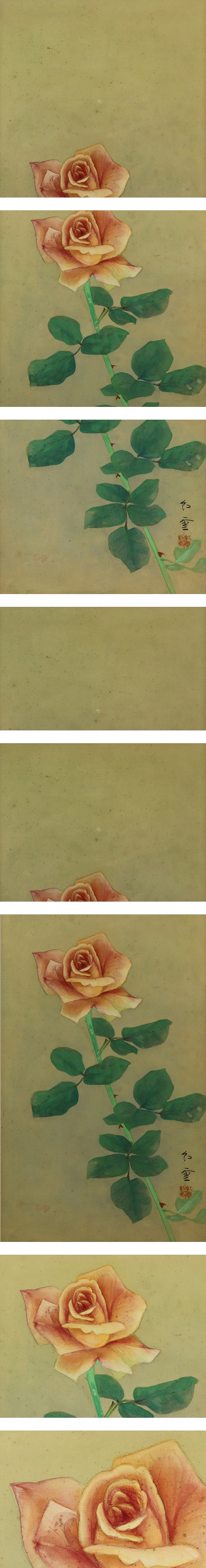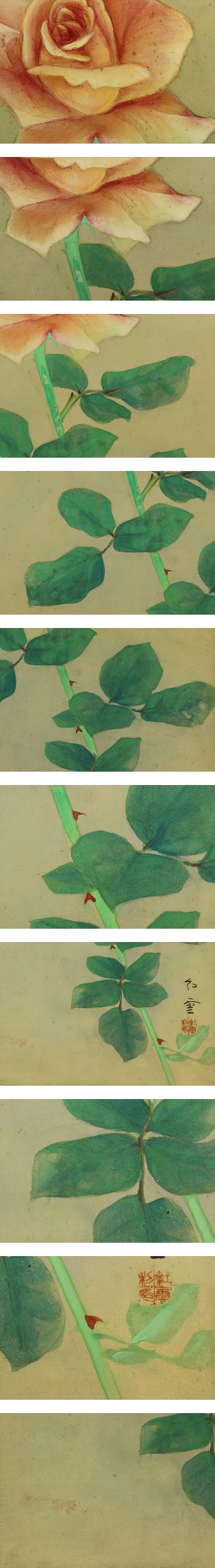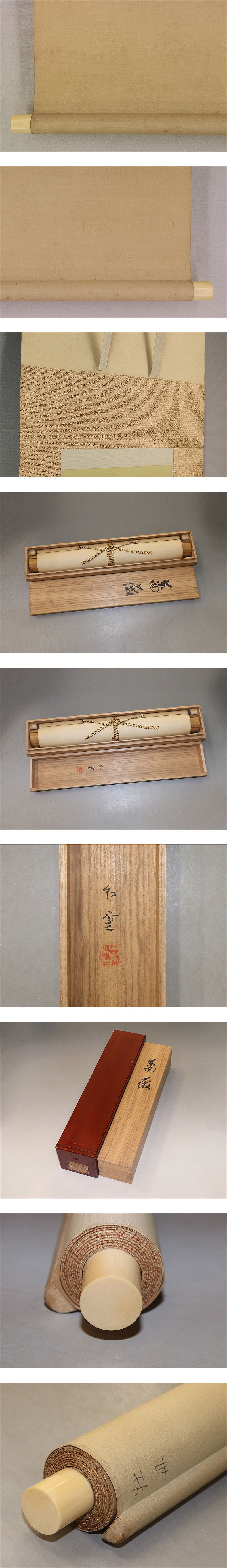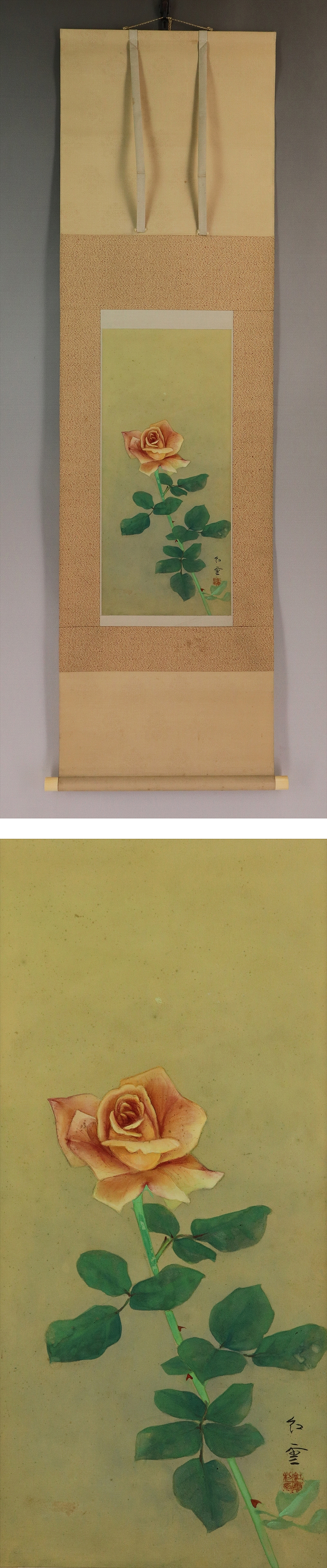 | №2110098【真作】山本紅雲【薔薇】◆絹本◆共箱◆二重箱◆太巻掛軸 | |
