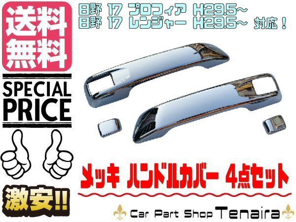 ◆◆ドレスアップ!美しいメッキ仕上げ!◆◆ ■日野 新型 17 レンジャー 新型 17 プロフィア メッキドアハンドルカバー左右(ボタン部付)4点セットです。 ■メッキ鏡面仕上げなので、高級感がランクアップ! ■強力両面テープ装着済なの貼るだけの超簡単取付! ※貼付場所の汚れを取り、脱脂を行ってください。 | |||