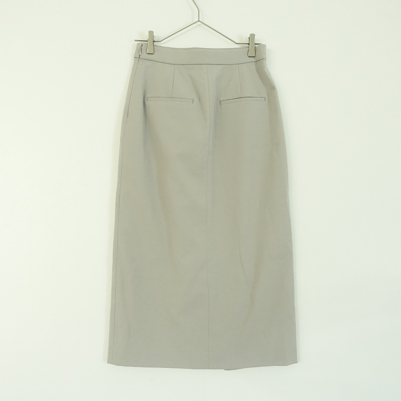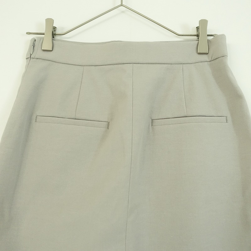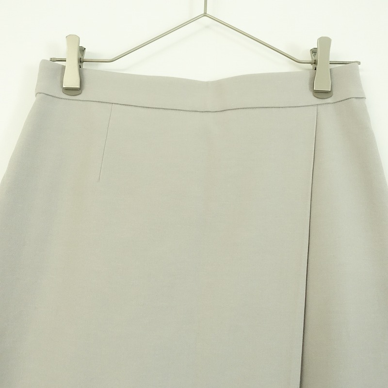 | 2023年春夏コレクション ICBのLOOSE WEAVE SKIRTです。カラーはライトセージグレーです。ポリエステル・綿・麻のUVケア・接触冷感・撥水加工などの多機能生地を使用。ストレッチ性・上品な艶もございます。裏地付きで仕立てられています。左のジッパー開きです。フロントがラップ風に施され、右内側にはスリットが施されております。ヒップには片玉縁ポケットがございます。定価(メーカー希望小売価格)20,900円の商品です。 |