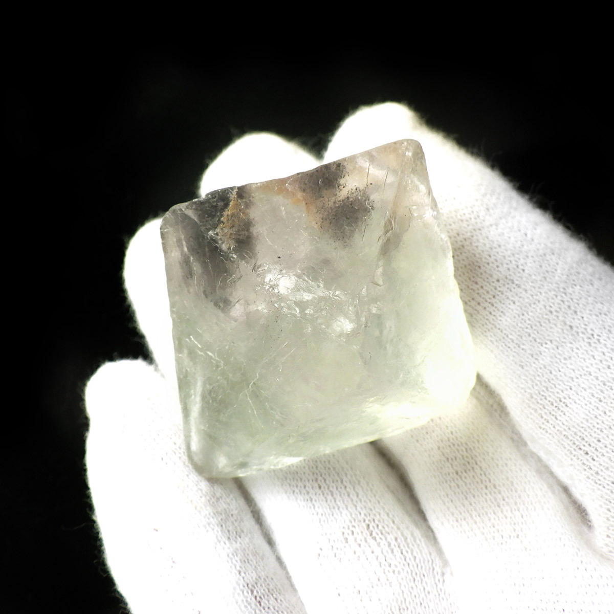 チャイナ産の八面体フローライトです。この正八面体の形は、蛍石が平面に平行に割れやすい性質を利用して加工したものです。光に透かすと一層の美しさです。| 出价者 | 信用 | 价格 | 时间 |