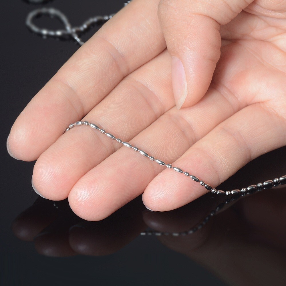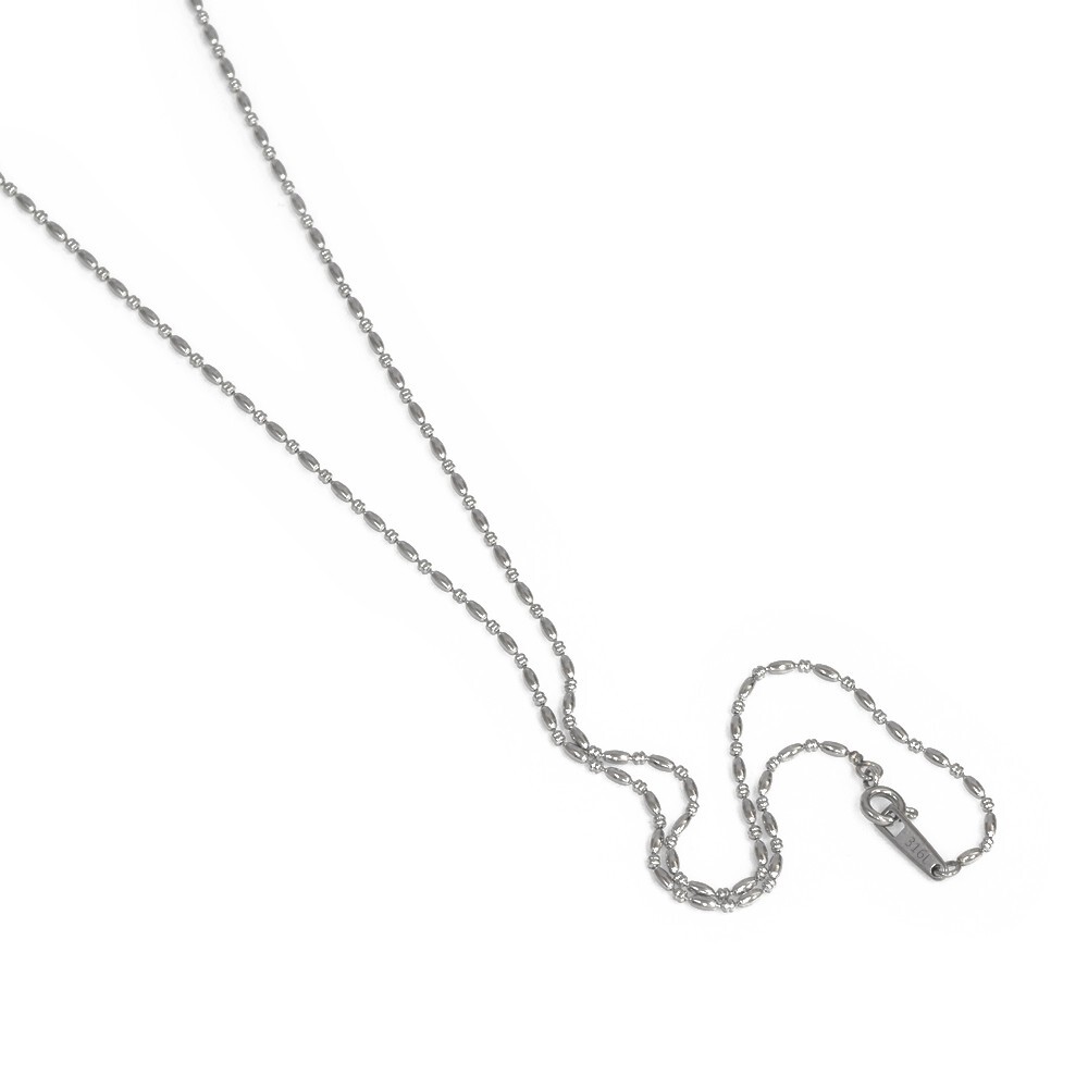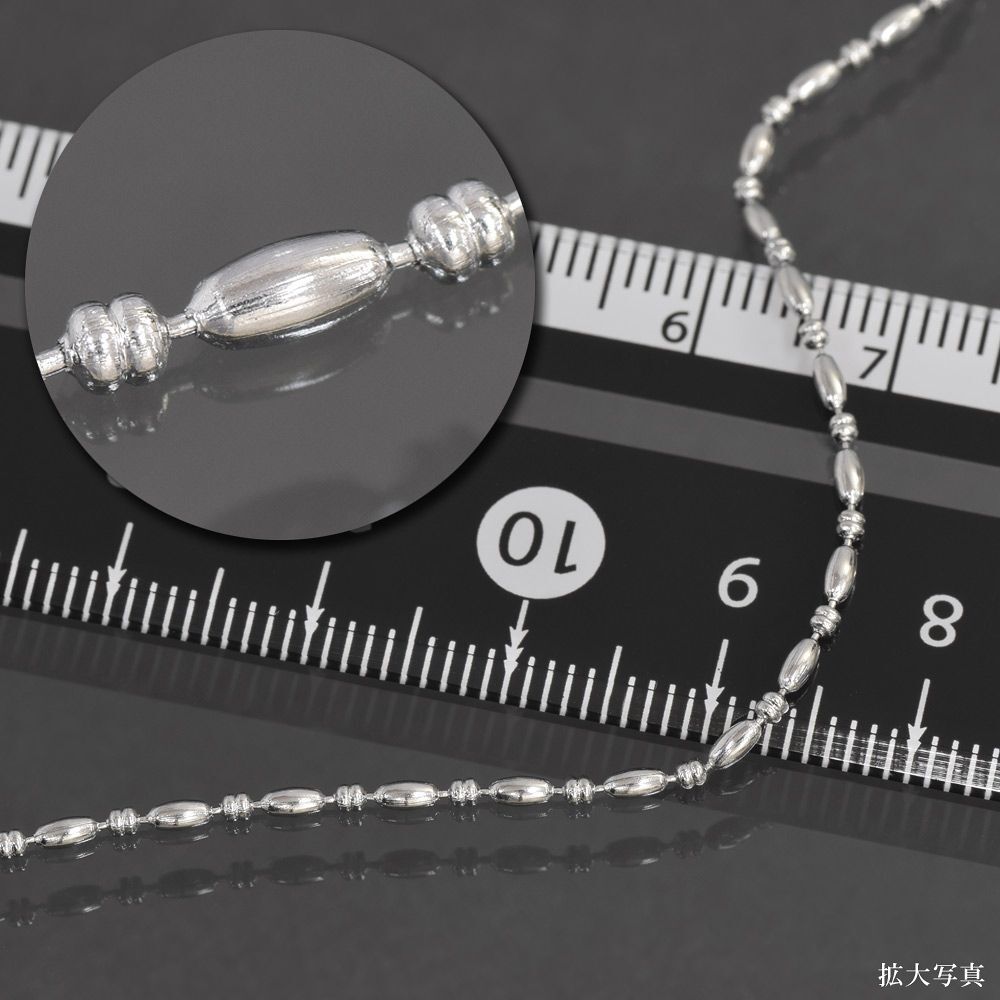 | そろばんライスチェーンは、ソロバン型のコマとライス型のコマが交互に連なったボールチェーンにも似たチェーン。少しエスニックな雰囲気が漂うネックレスです。 ※こちらのチェーンは絡まりにくく万が一絡まってしまったとしても解きやすいデザインです。 |