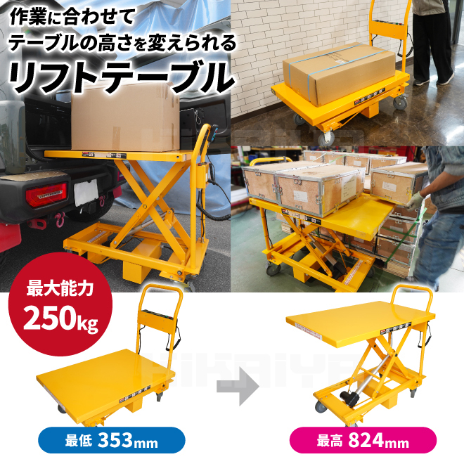 ●作業に合わせてテーブルの高さを変えられる、便利なリフトテーブルです ●重い荷物の積み下ろしなど、さまざまな作業に使えます ●コントロールパネルのスイッチ操作で簡単に上昇下降します ●スイッチを押している間のみ作動するのでお好みの高さで止めることが出来ます ●電動アクチュエーター(シリンダー)によって上昇、下降します 油圧を使用しないので自然降下がなく、油漏れの心配がありません ●油漏れがないため、工場や現場だけでなく事務所や研究室などの屋内でもご使用いただけます ●電動アクチュエーター&TPRキャスター採用で動作音が静かです ●充電バッテリー式でコードレスでご使用いただけます ●1回あたり約14円の電気料金で充電可能 昇降1往復 約0.1円で使用でき、省エネへの取り組みに最適です ●CEマーク取得品 |